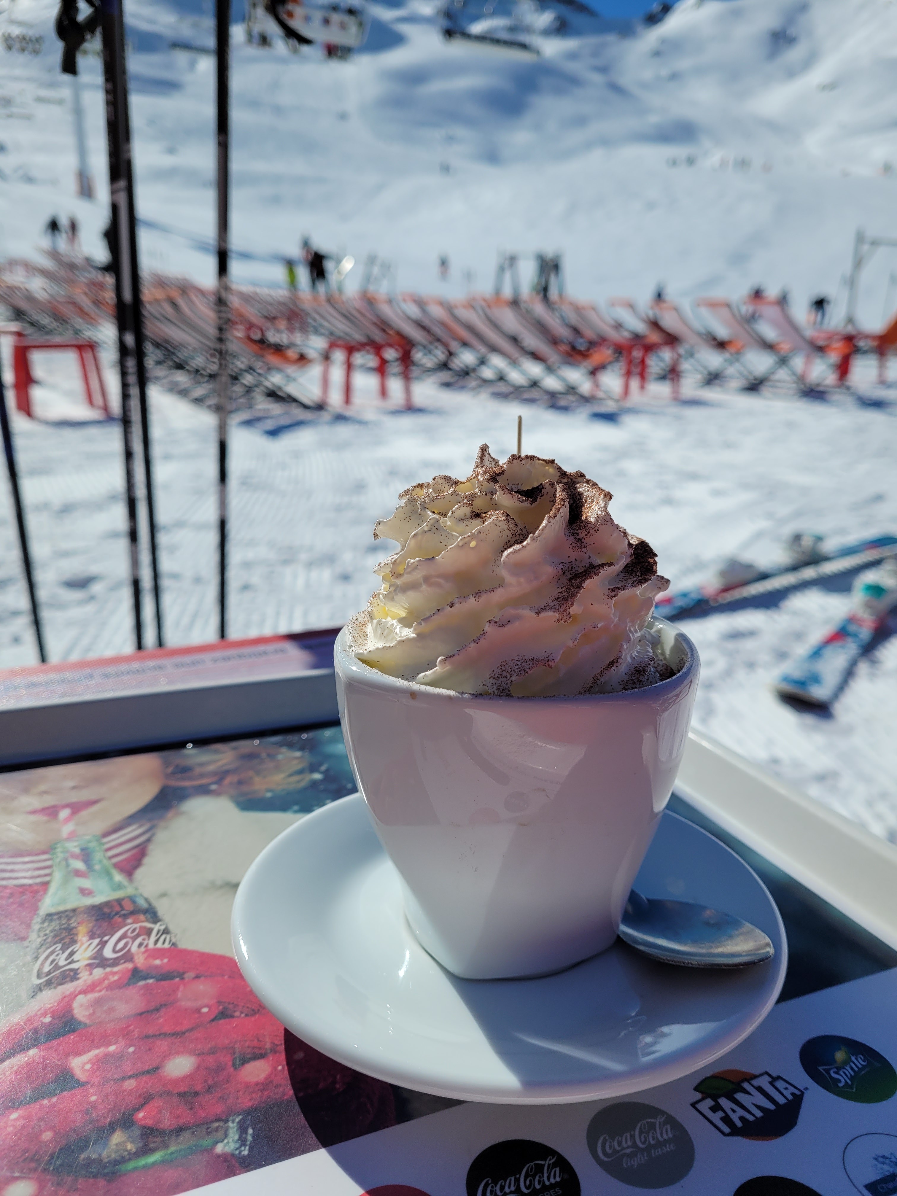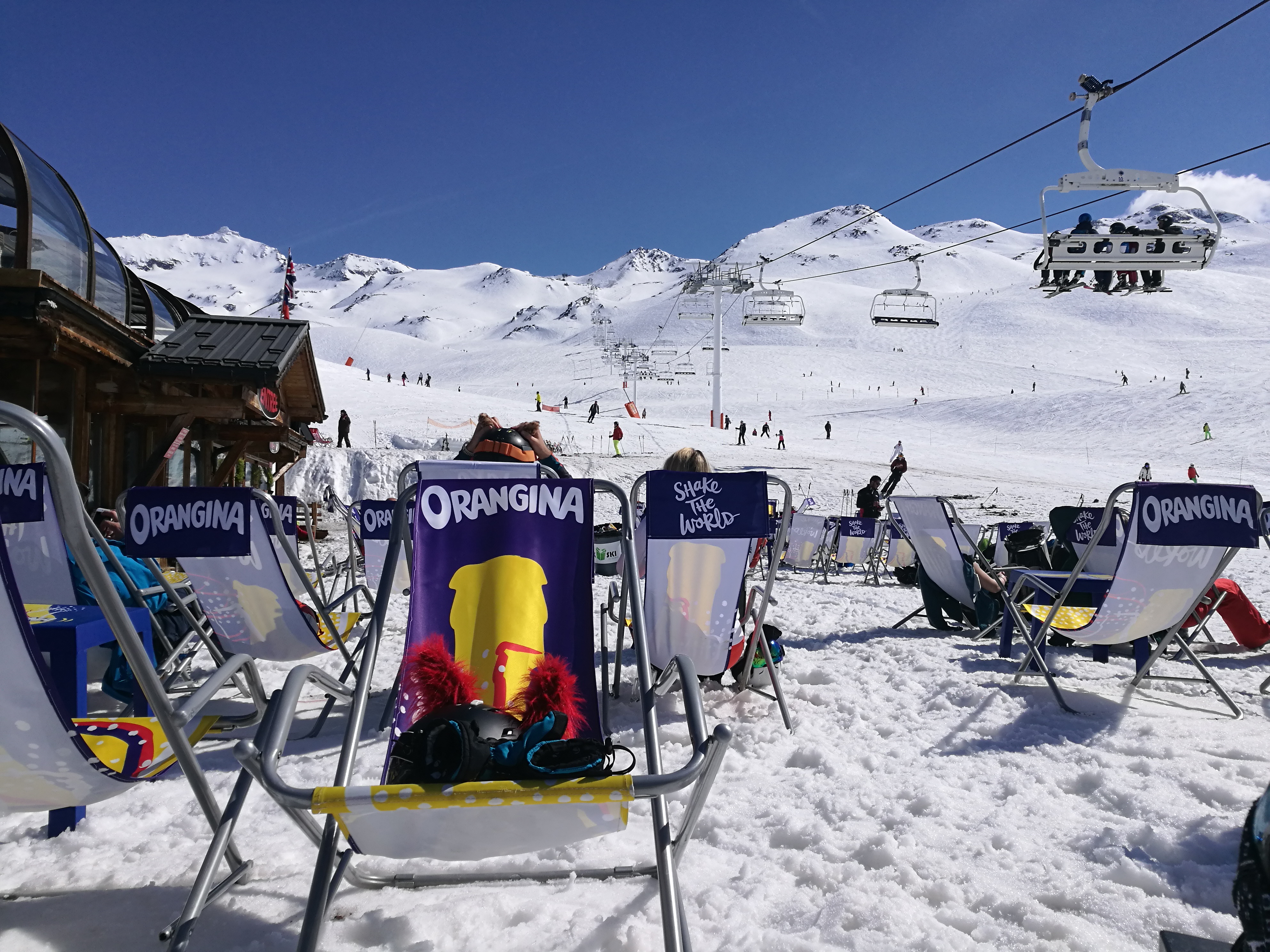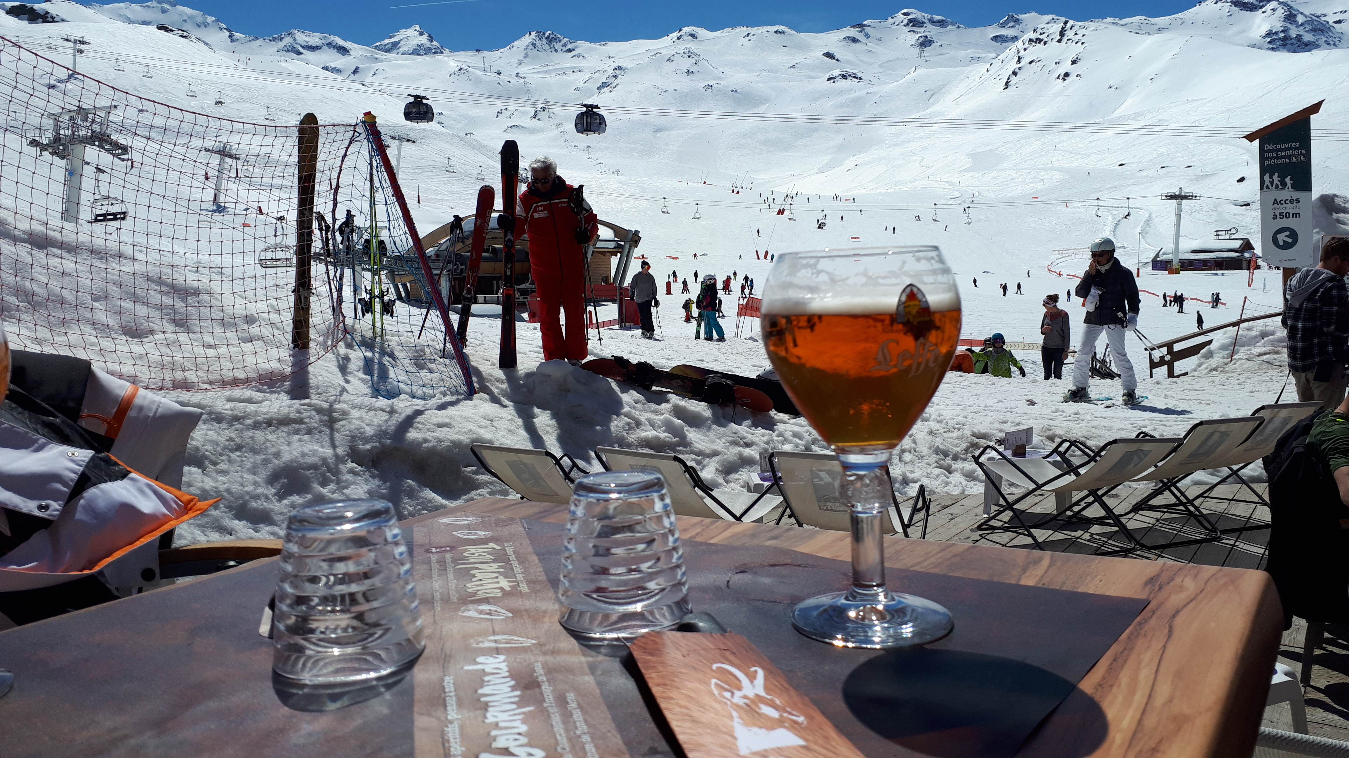 Bel endroit quand le soleil brille et pas trop de vent. On peut y manger et boire de tout. Assurez-vous d'apporter un portefeuille épais. Mais c'est effectivement partout à Val Thorens.