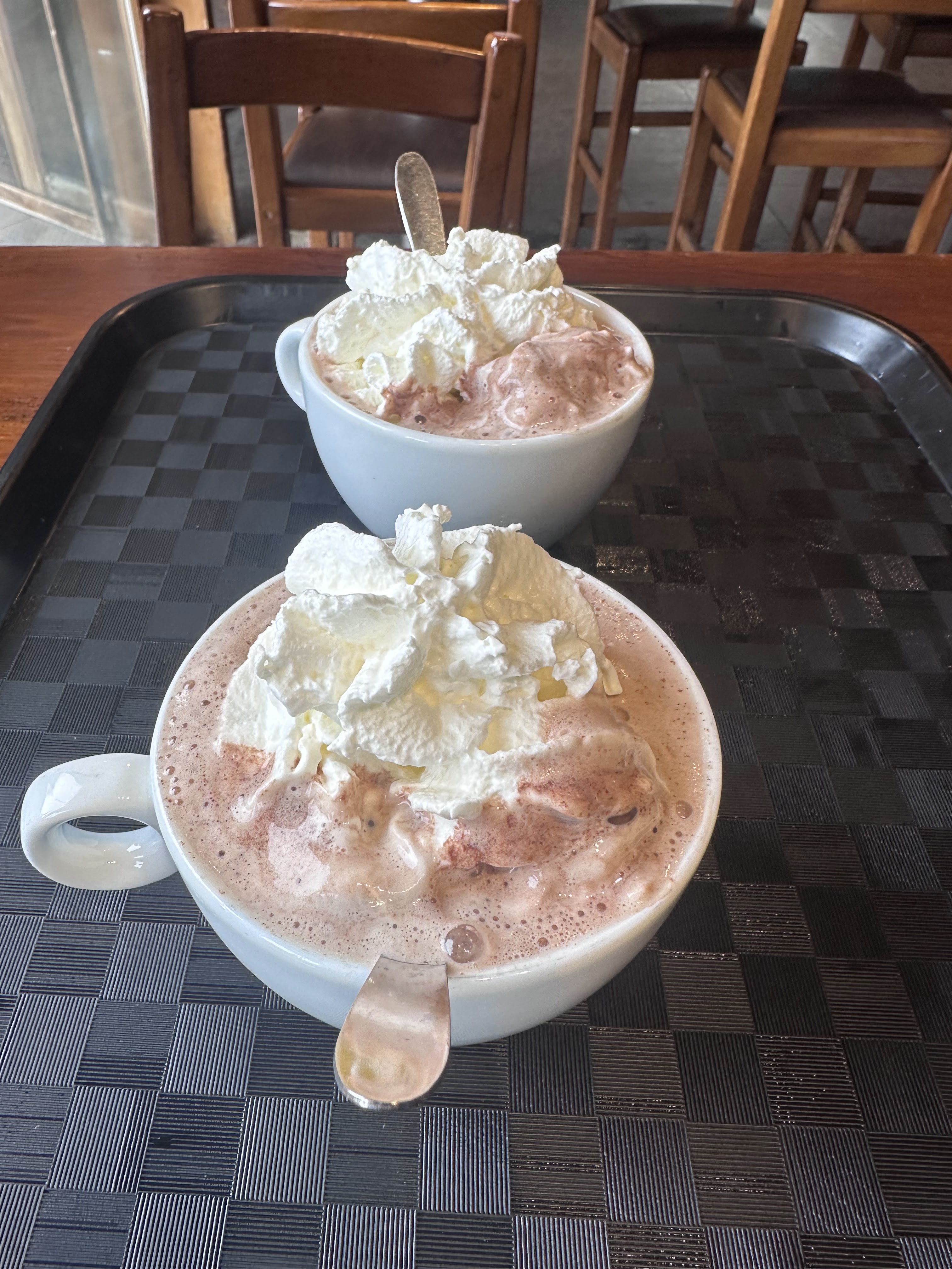 Un chocolat chaud qui manque beaucoup d'éclat. Moins 5 pour l'effort. Quelle perte de temps et quel manque apparent d'efforts. Il est évident que le monsieur plus âgé qui sert au bar à l’étage ne veut pas être là. De bien meilleurs endroits pour les arrêts au chocolat chaud ailleurs sur la montagne
