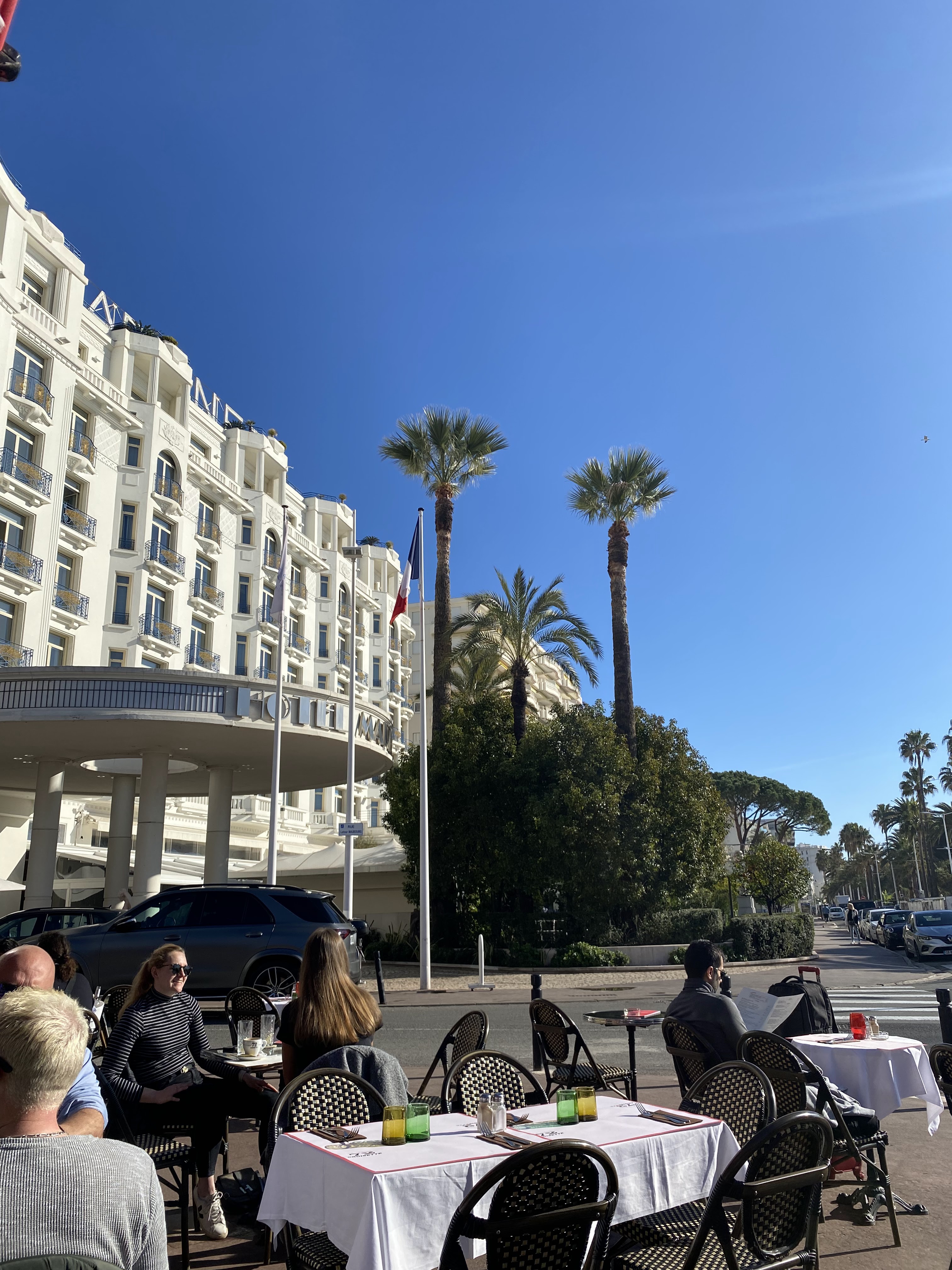 En periode de Festival. Malgre l'affluence les serveurs sont sympas et efficaces. Un peu cher mais ca vaut la peine. Vue sur la réception de l'hôtel Martinez. Top