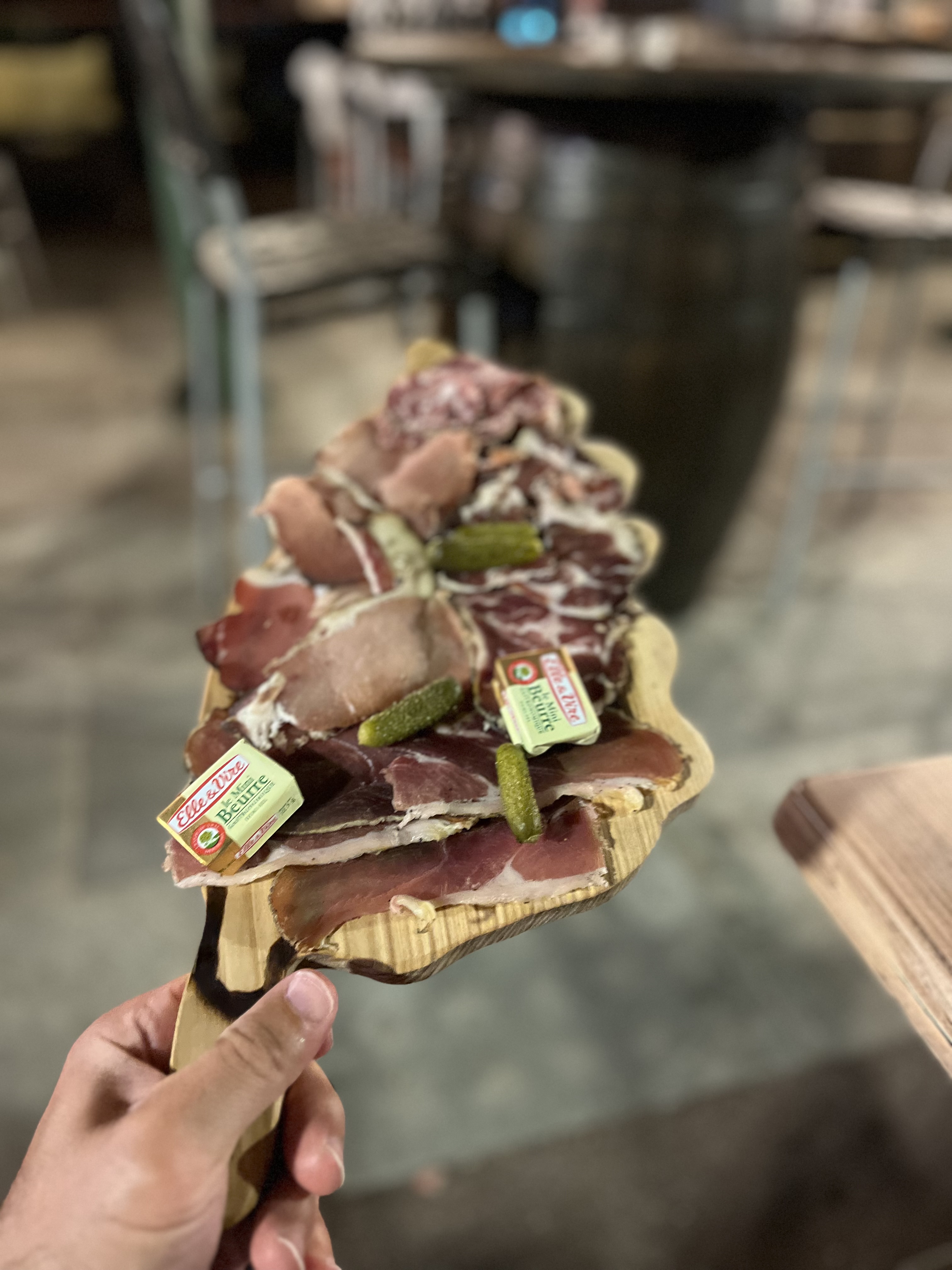 Planche de charcuterie excellente je recommande. Et serveuse très sympathique.