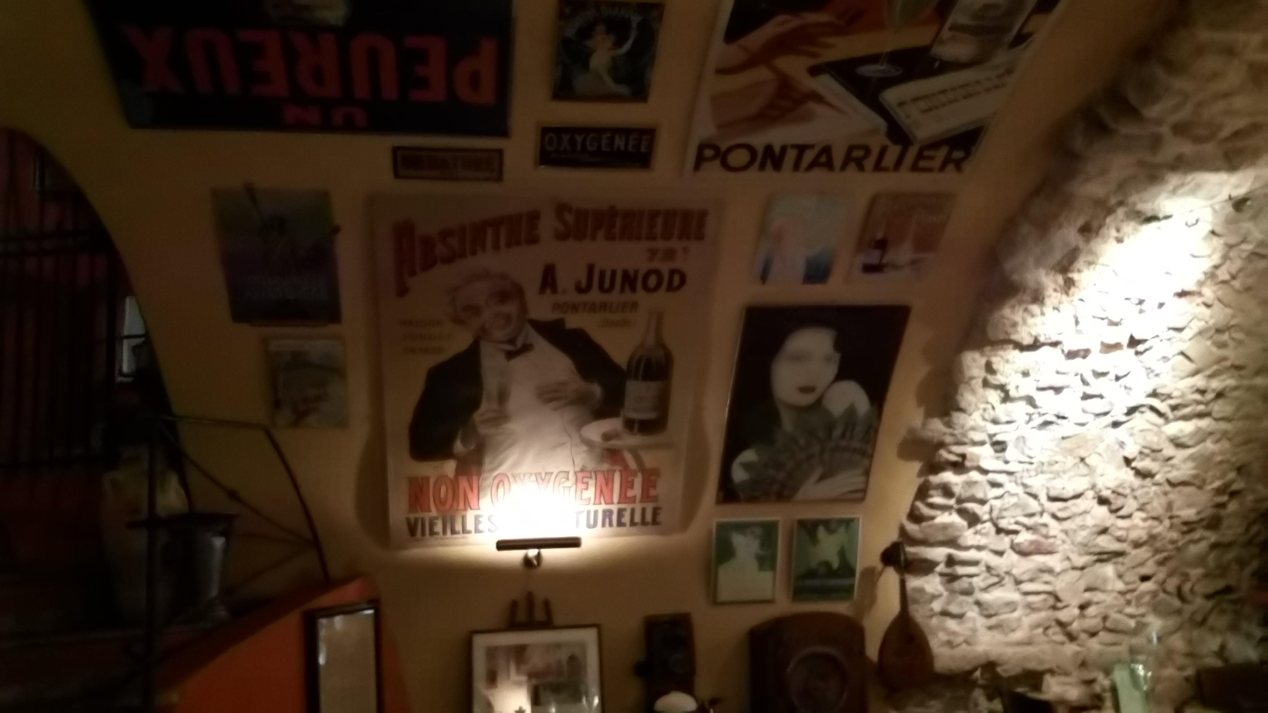 Petit endroit très agréable à Antibes. Les affiches aux murs évoquent l'atmosphère d'antan. L'absinthe existe en différents dosages, mais à consommer avec prudence !