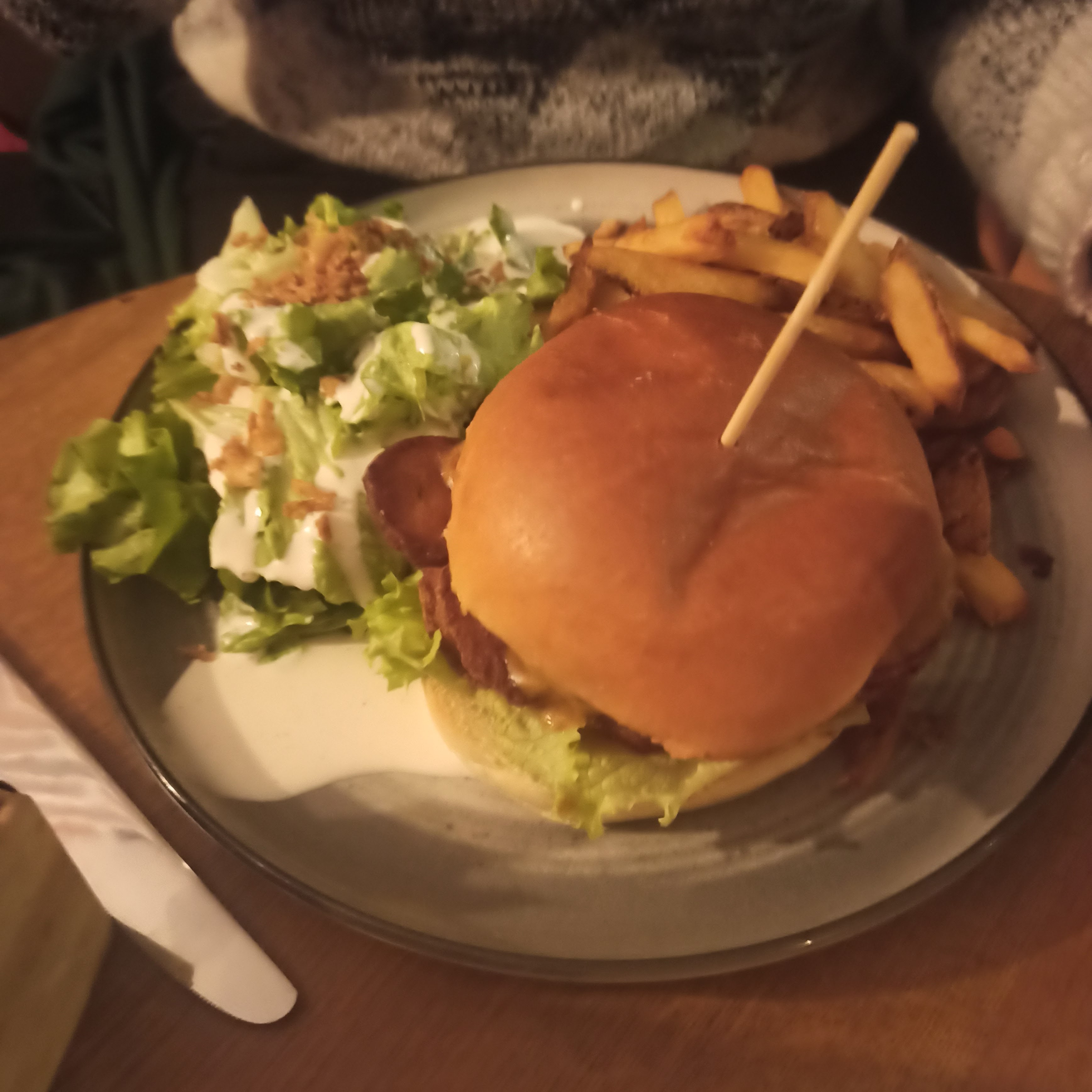 Petit restaurant/pub rustique. Avec une petite carte de burgers... juste un pub. Confortable et facile à recommander