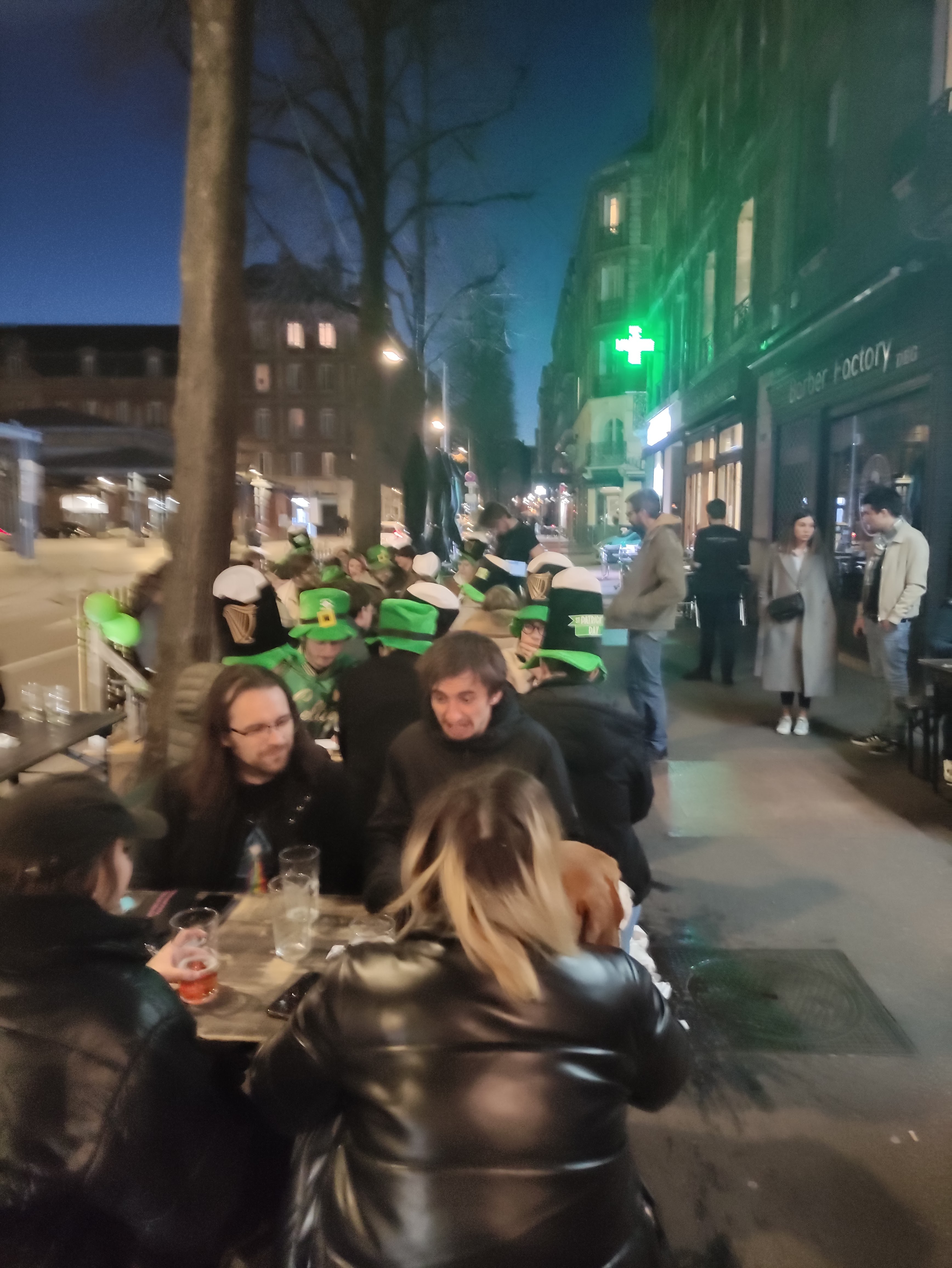 Grosse ambiance. Bar bondé,st Patrick oblige !! Serveurs très sympas . A faire sans hésiter.