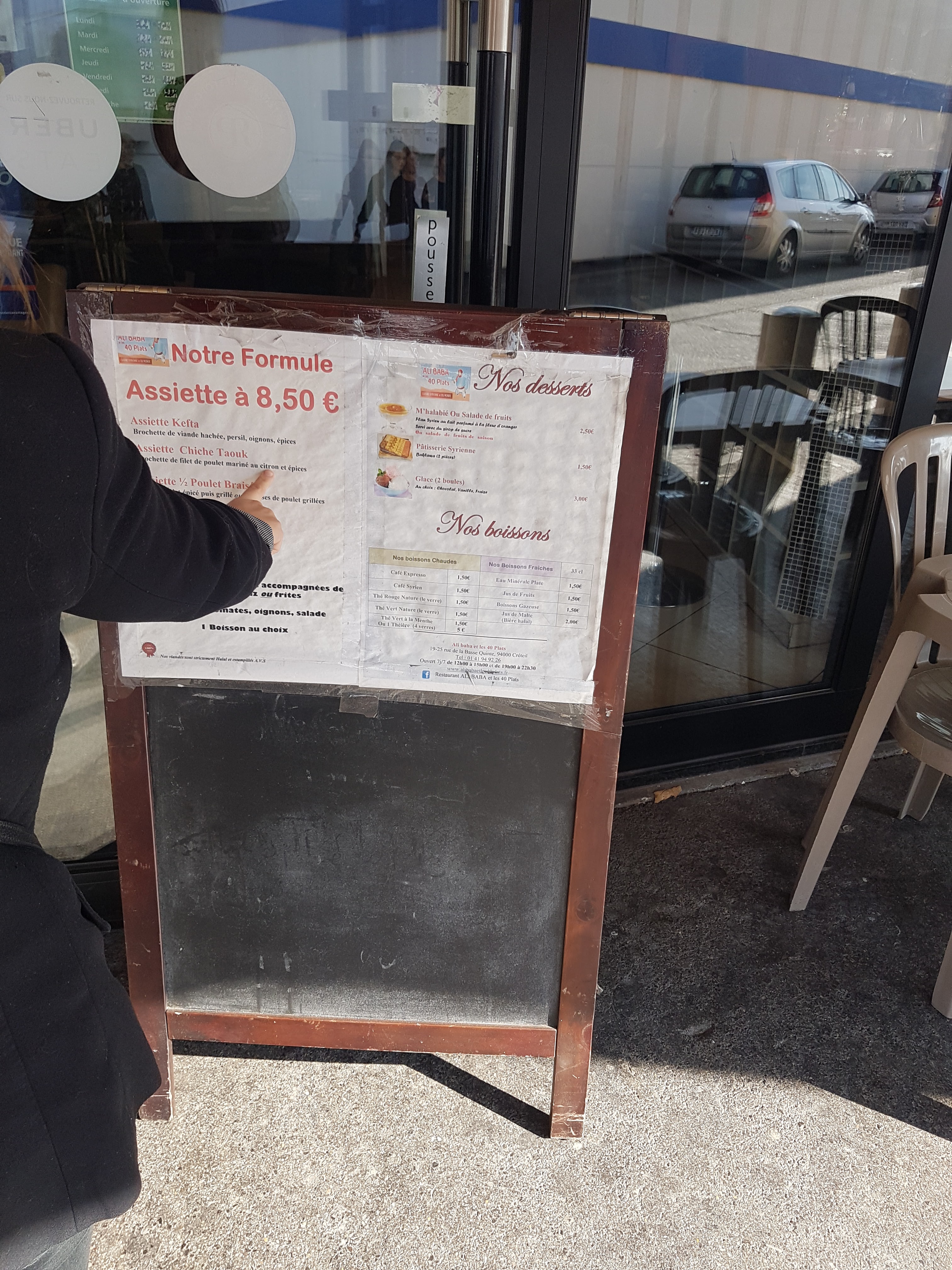 Parking facile et pose en faisant les courses J ai aimé le menu très abordable j ai apprécié les brochettes de kefta accompagnées de blé concassé (ou frites) Personnel sympathique