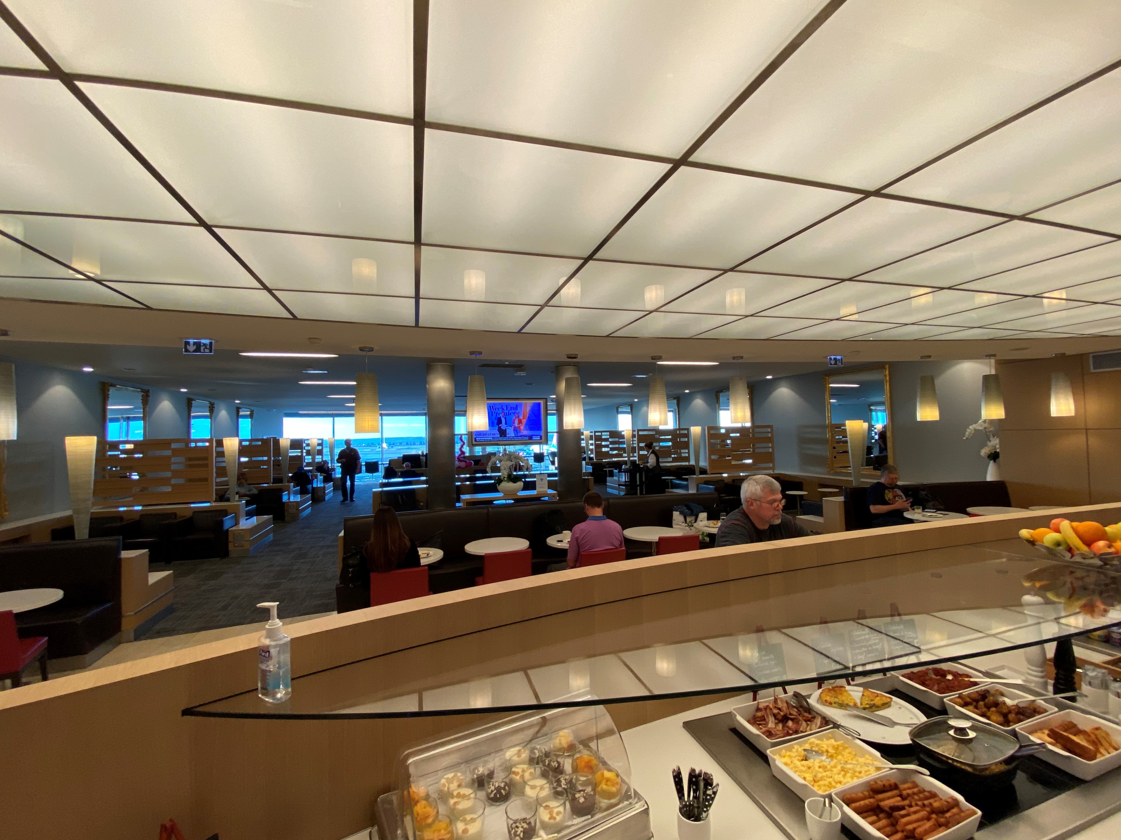 Excellente sélection de plats et de boissons (dépasse les offres trouvées dans les clubs américains) dans un cadre libre-service, mais il s'agit globalement d'un salon plus petit. Pourrait utiliser des prises de courant supplémentaires près des sièges principaux de la fenêtre, car il n'y en a pas dans cette zone.
