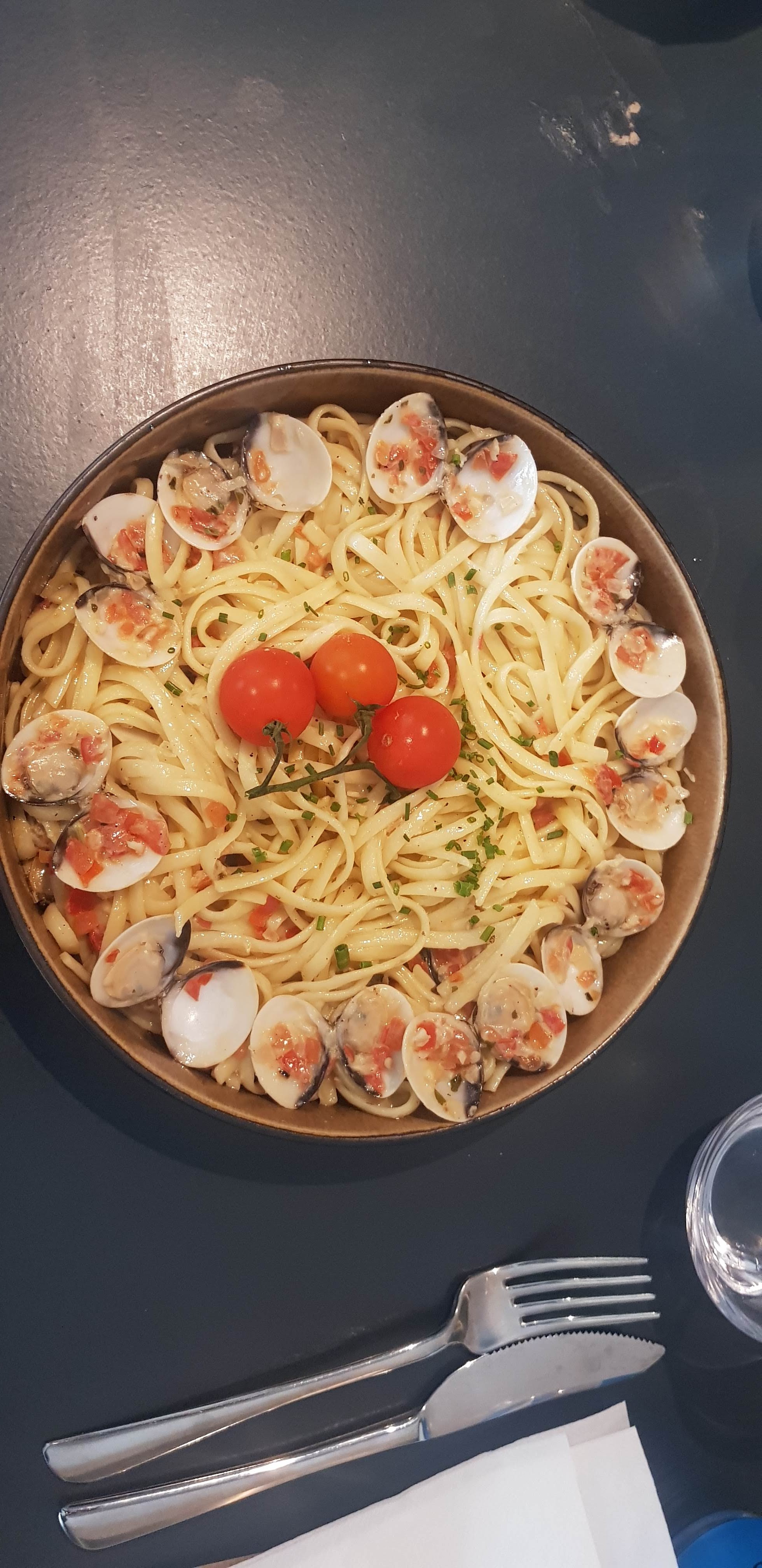 C'est en passant devant votre menu que nous nous sommes mis à table pour déguster de délicieuse linguines aux palourdes.... merci de votre accueil jeune... c'était au top Comme dit au serveur, mixer chez vous pourrait être cool avec mon fils