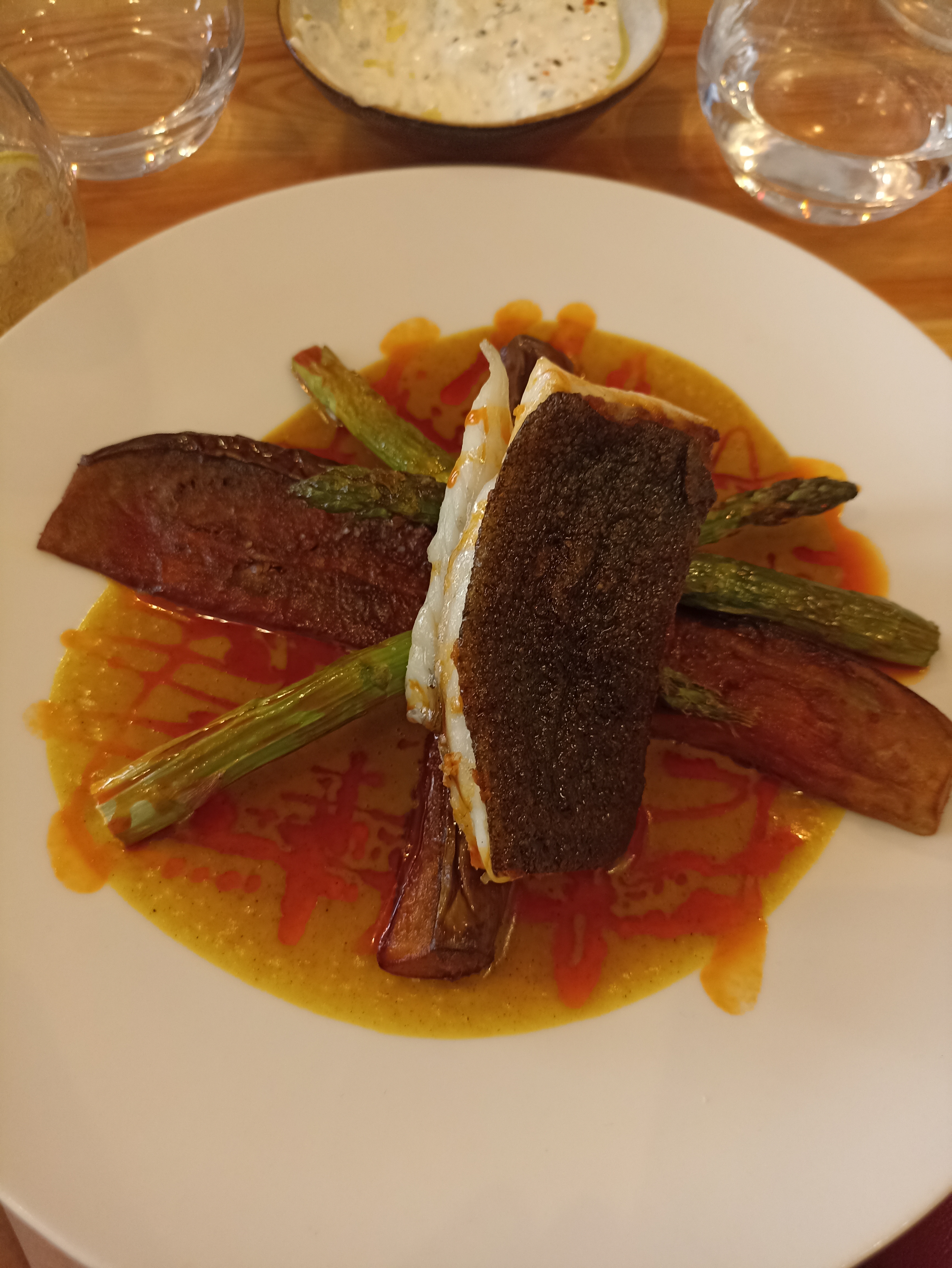 Accueil et cadre sympathiques, serveur aux petits soins. Niveau saveurs rien à redire, mais plat cher pour ce qu'il était (26€ pour un petit bout de poisson, 3 asperges et 2 aubergines).
