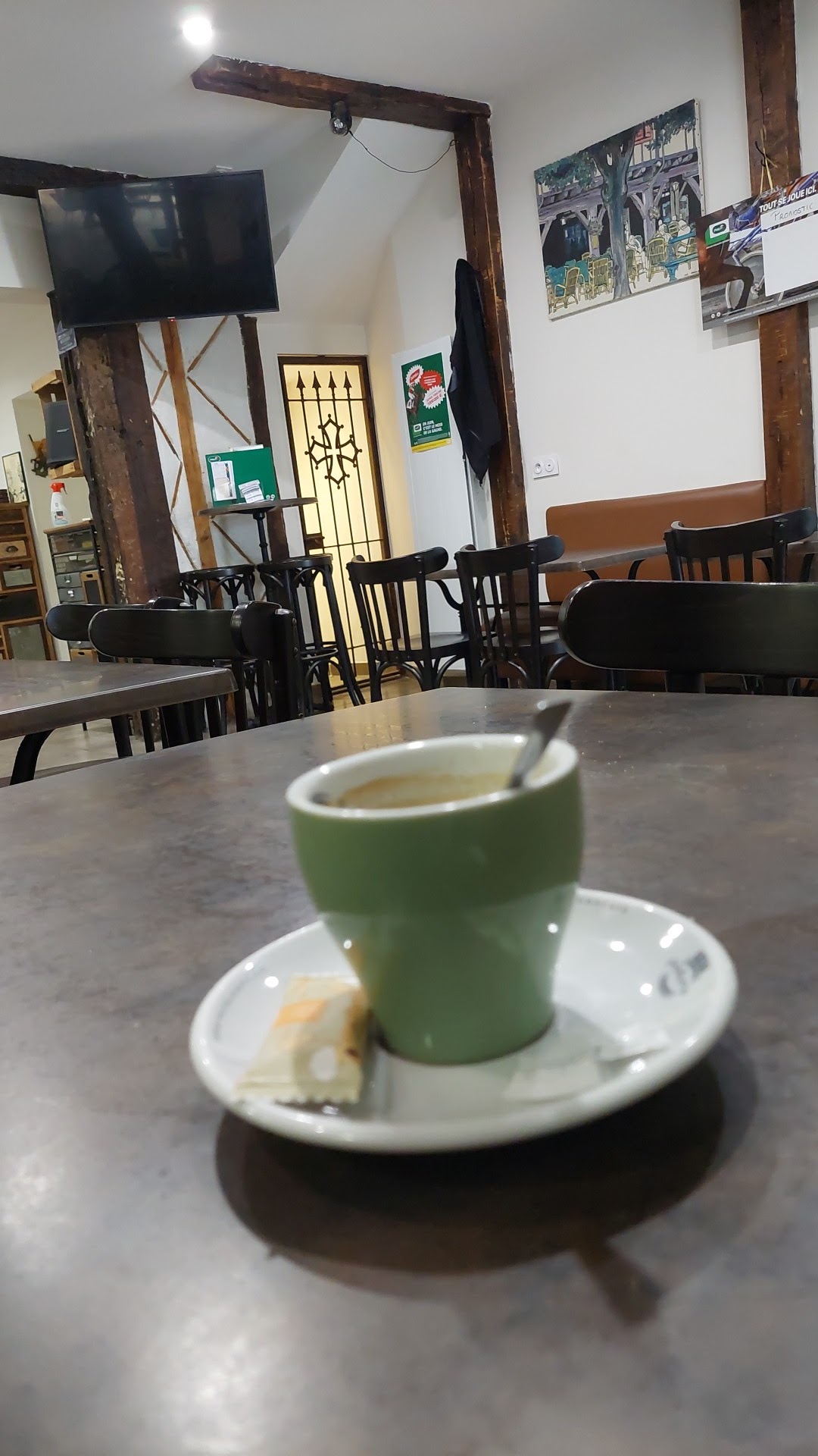 Un café convivial ou l'ambiance est toujours là malgré ces moments difficiles pour les patrons Tout est fait pour passer un bon moment : les distances sont respectées le masque est porté Par le personnel et les clients debout les tables sont désinfectées à chaque départ Il n'y a aucun problème Je recommande