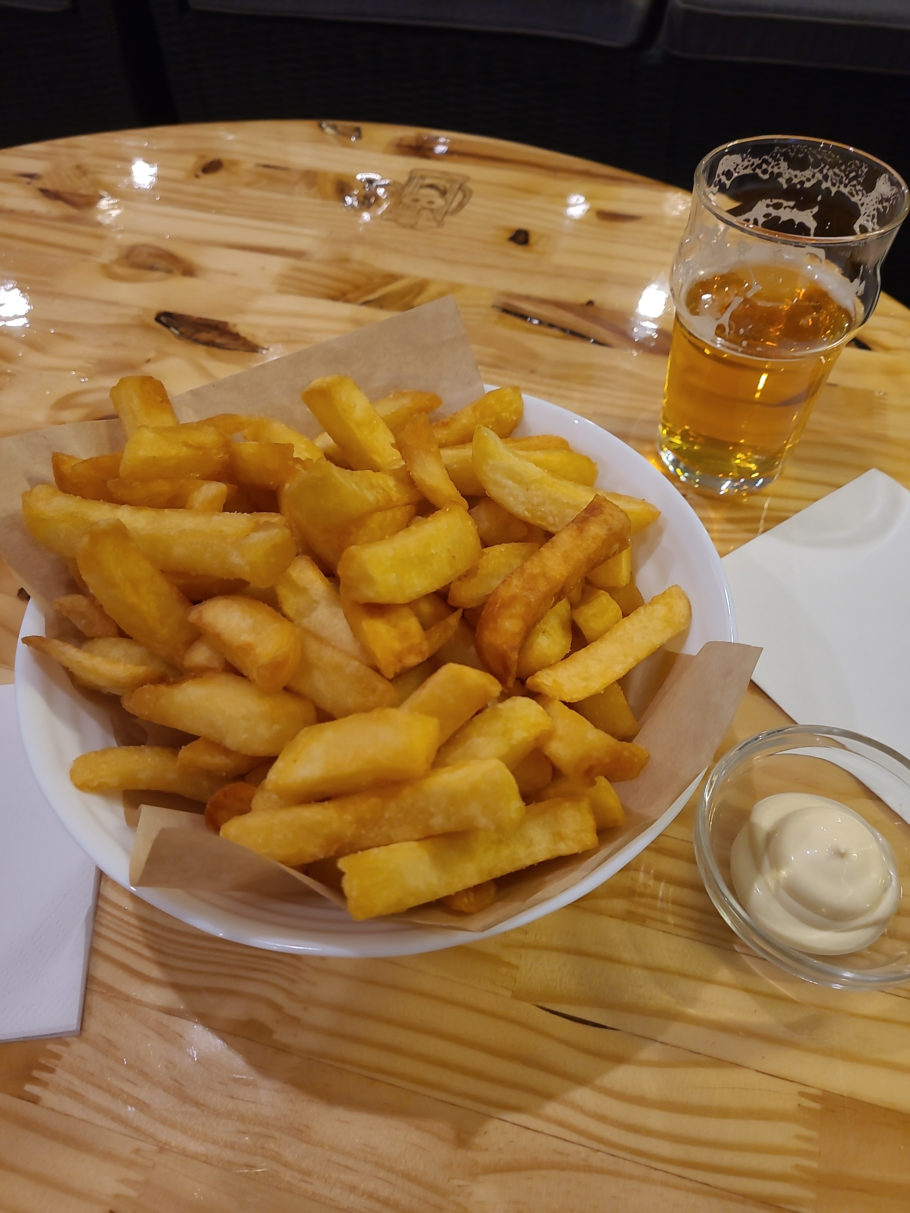 Pub en devenir, frites excellentes, croustillantes a souhait. Jeux de fléchettes, babyfoot, 4 écrans géants, de quoi passer une soirée en famille ou entres amis....