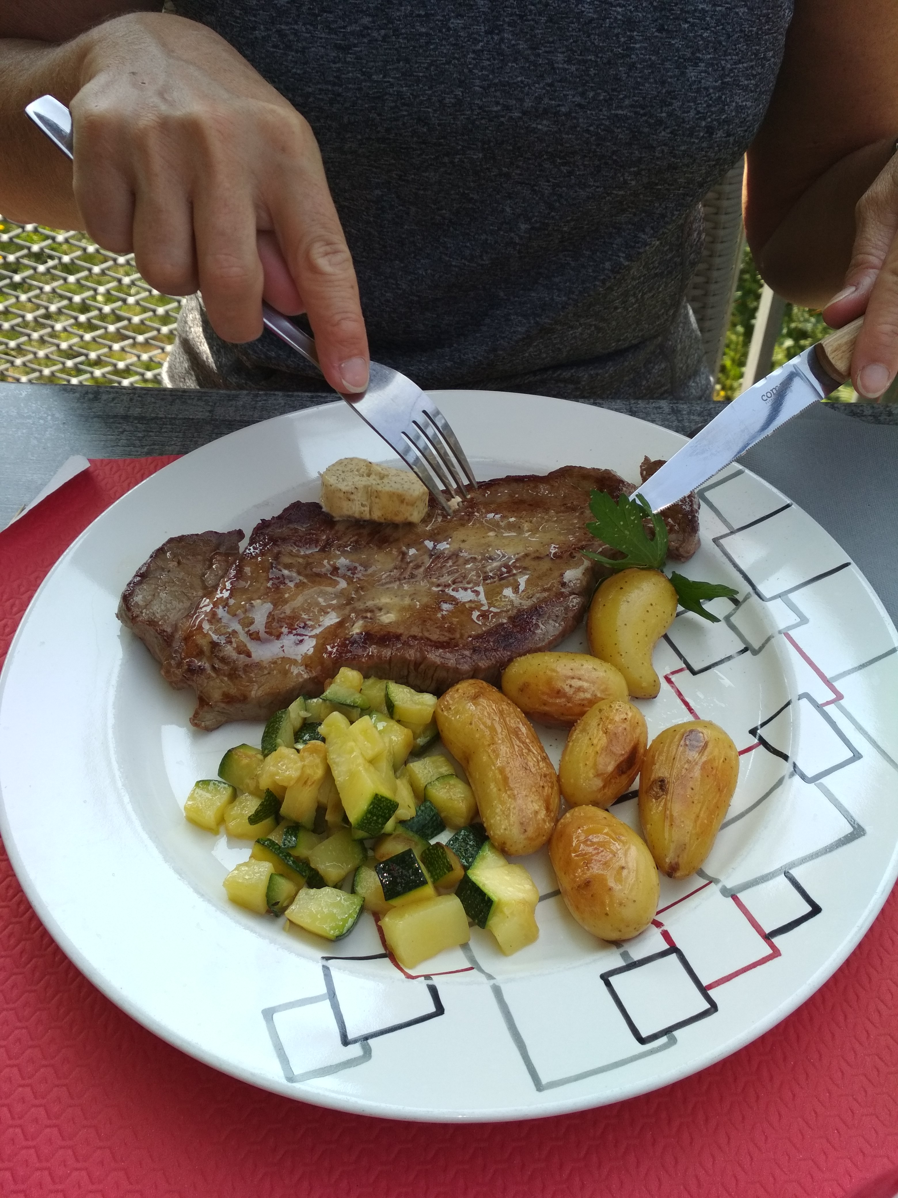Bonne bavette bien saignante,très bien,car pour manger de la viande rouge en camping autour du lac des settons ,il faut faire de nombreux kms,aucuns boucher ,le désert de Gobie!