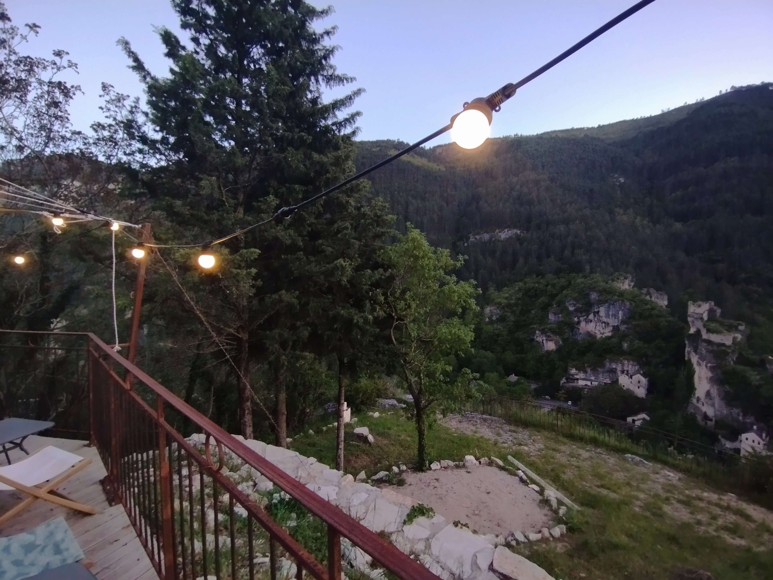 J'y suis allée pour le stage de danse qu'ils accueillent tous les ans. C'est une expérience formidable, ce lieu est un bijou. Situé au dessus des gorges avec vue plongeante sur le Tarn, le jour c'est impressionnant de beauté et la nuit quand les guirlandes de guinguette éclairent la terrasse on a juste envie de se laisser bercer par le silence et admirer cet extraordinaire panorama.