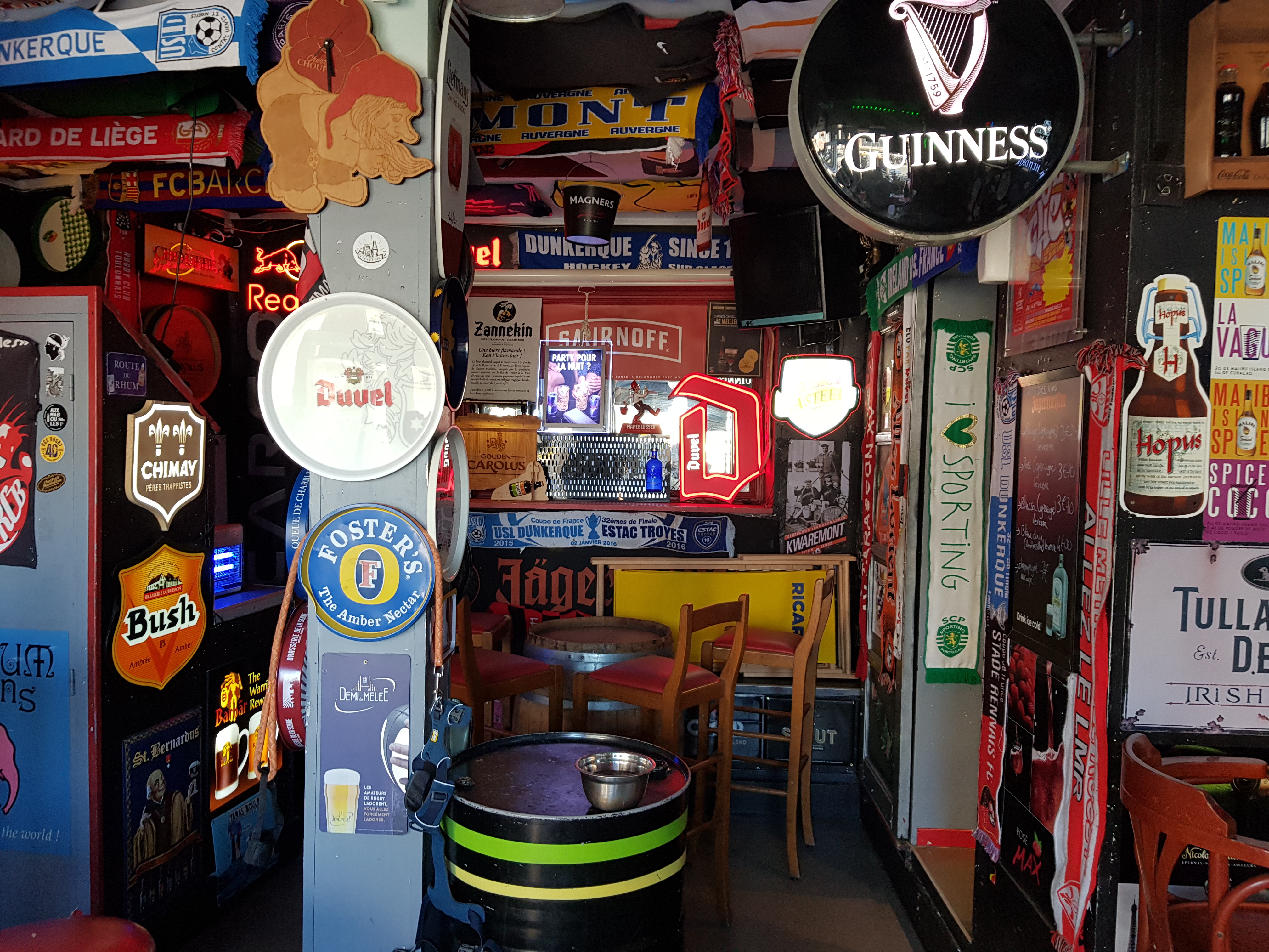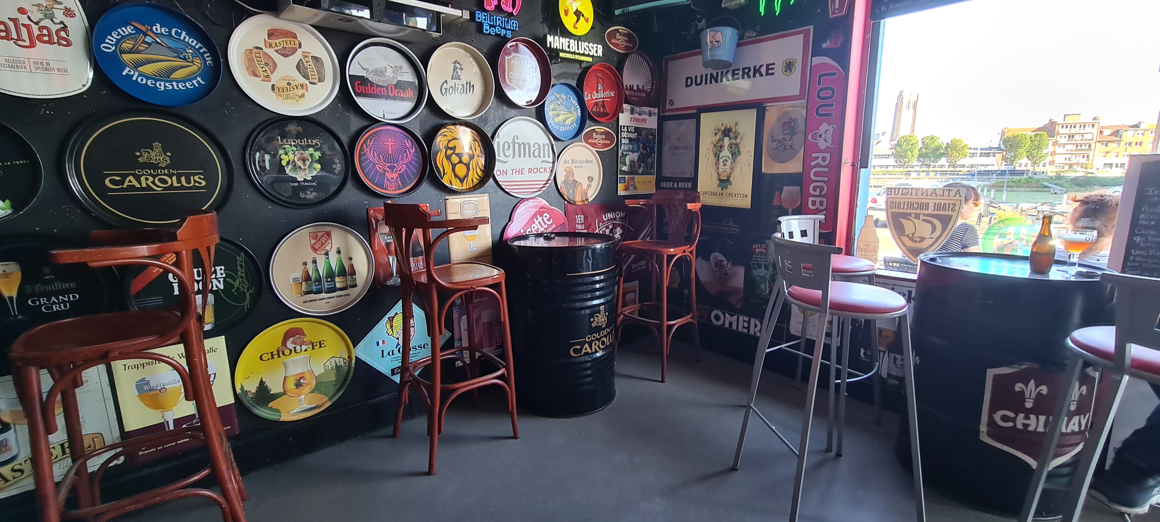 L'intérieur du bar est tout simplement génial déco fut métal, plateau de bière, à voir absolument et le patron est super sympa et comme bien souvent dans les bars dunkerquois on parle facilement les clients