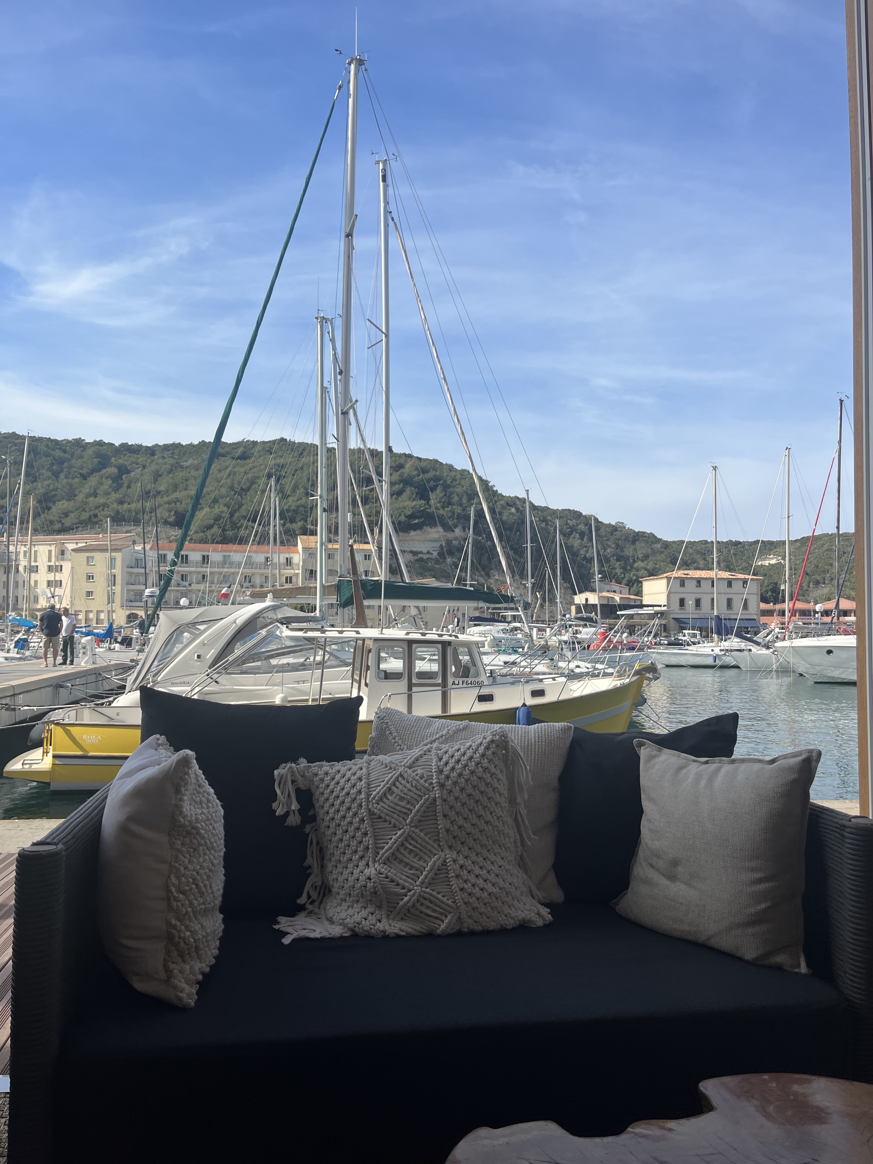 Pris un petit-déjeuner en profitant du port de Bonifacio. Superbe endroit à la décoration chic! Très bon service