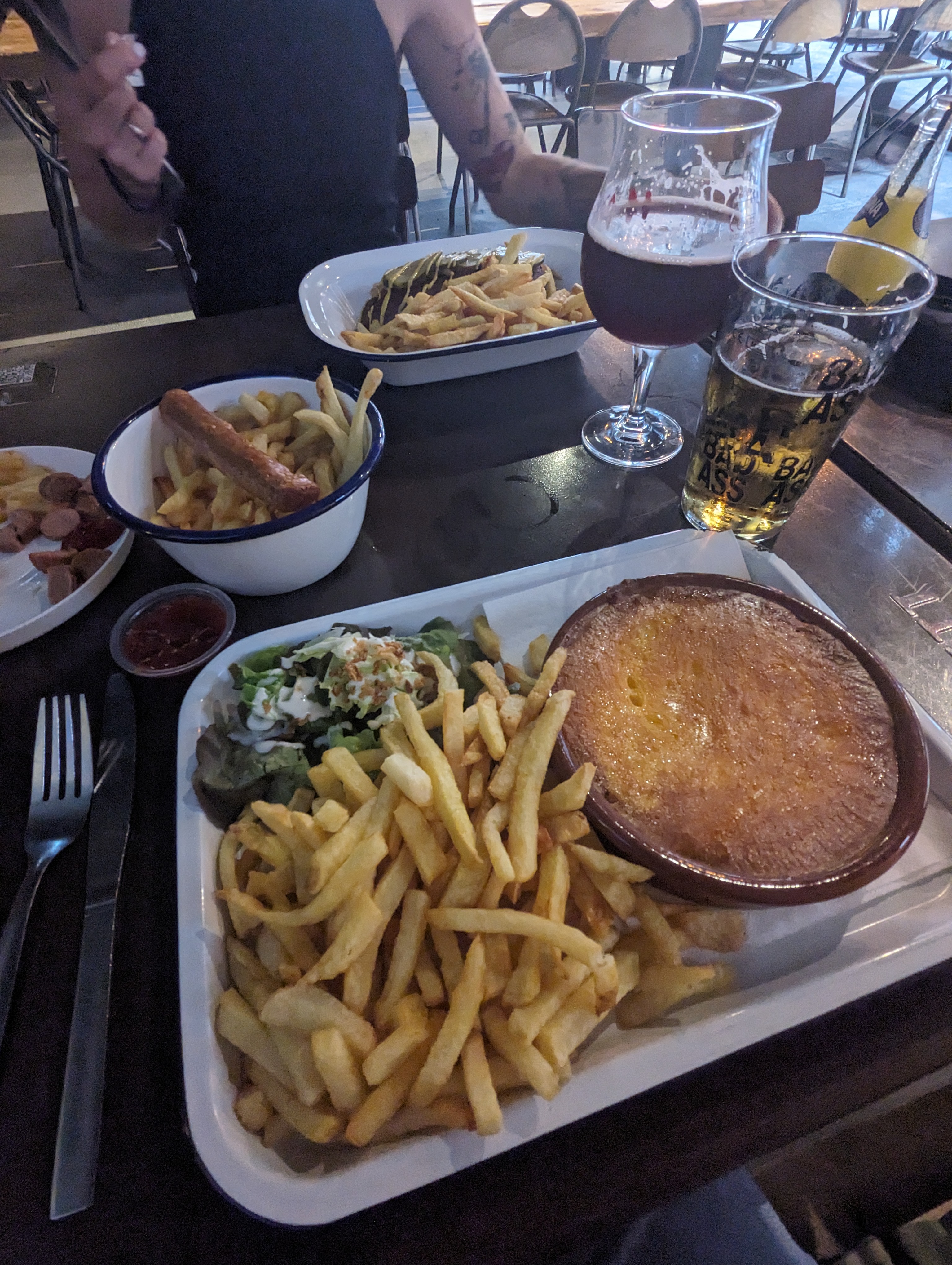 Bar spacieux , déco et ambiance indus. Bon choix de bière et snacking. Hot dog très bon. Les gros plus: le cheddar sur les frites 🤗et bar kids friendly : salle de jeux et chaise bébé.