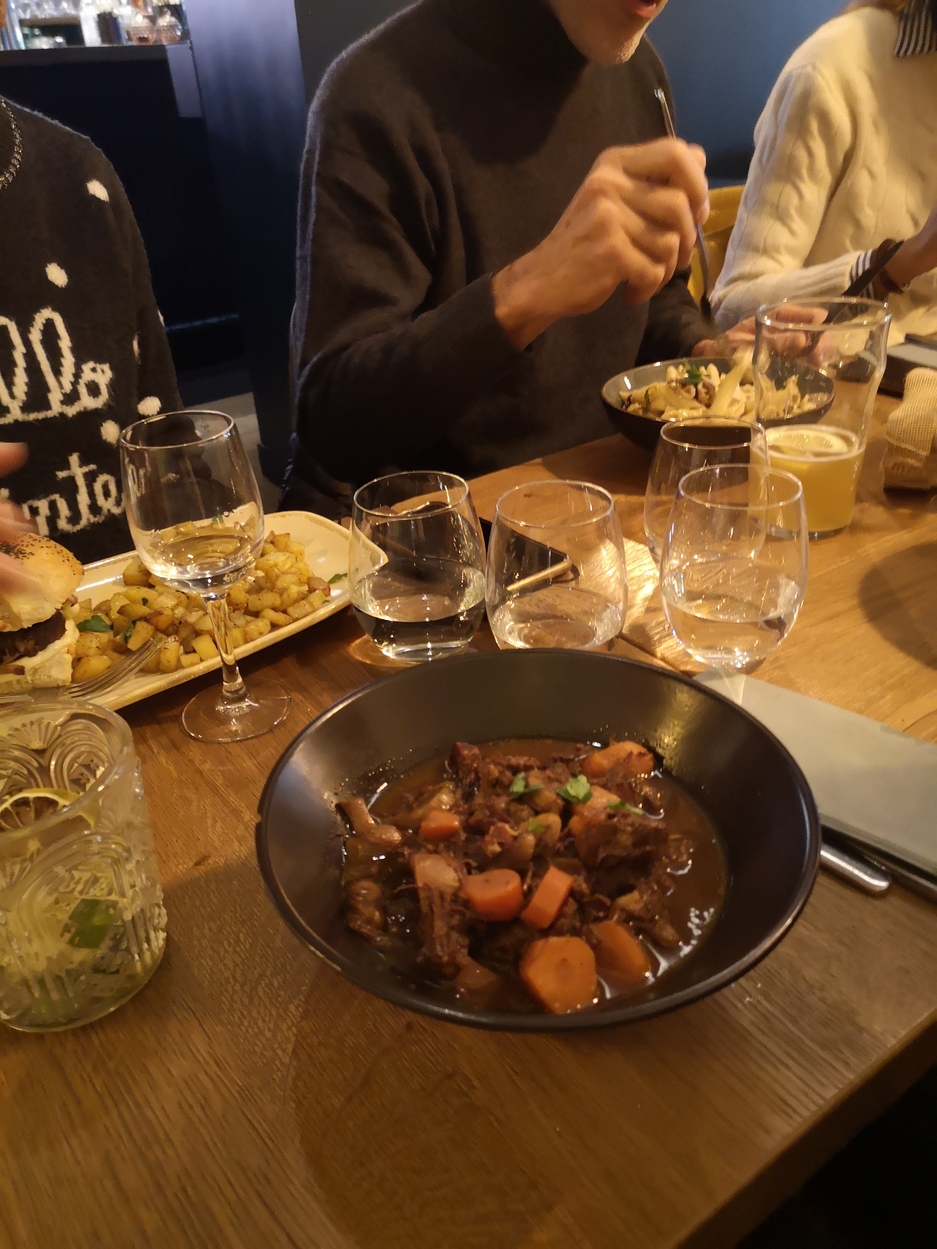 Découverte positive de ce restau à l'atmosphère cosy . Accueil chaleureux et souriant, et une cuisine savoureuse !! Pour ma part, découverte du hamburger spécial part des ours avec une viande fondante mijotée 7h... Je recommande ! 👍