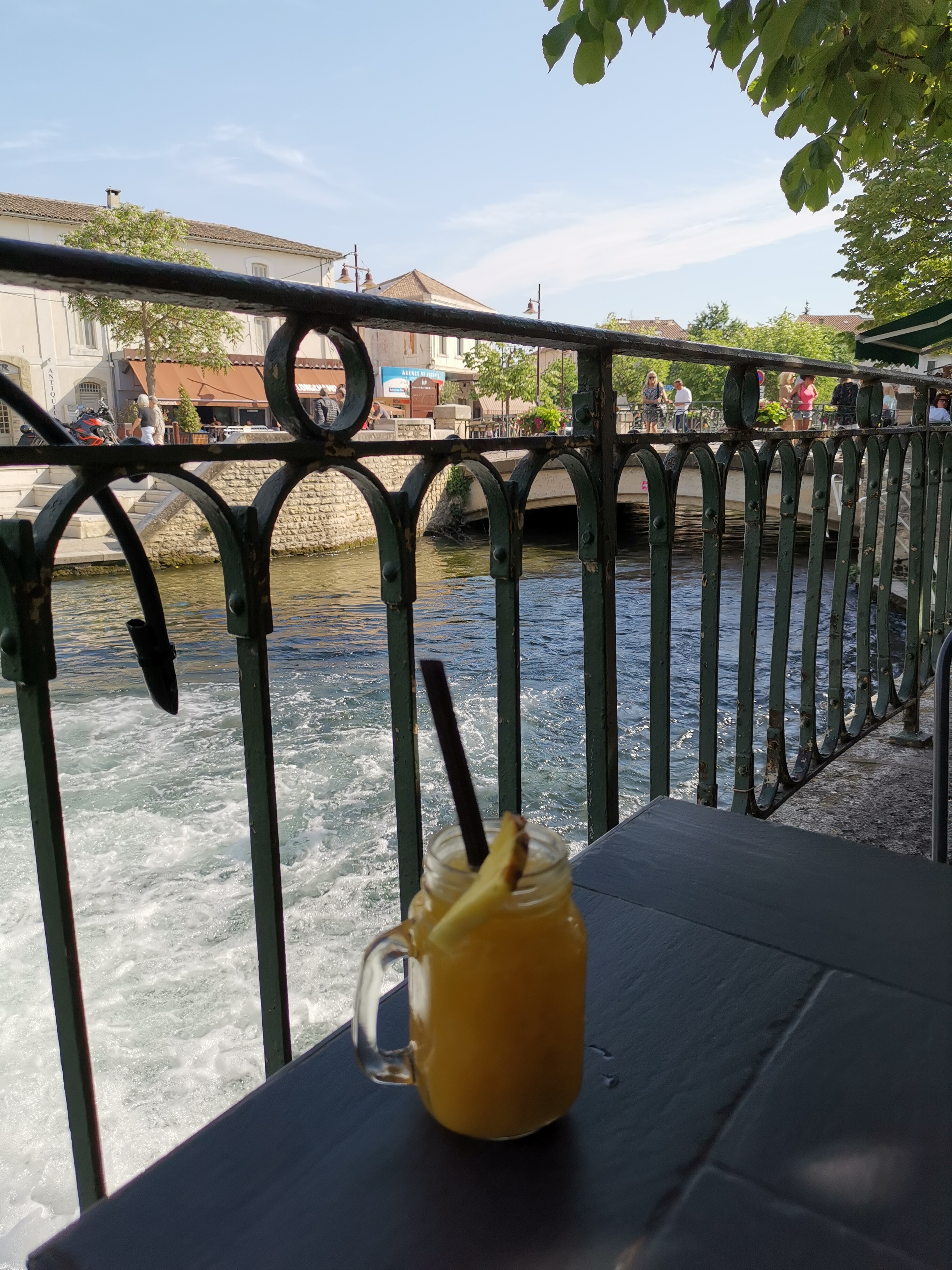 Emplacement de rêve avec vue sur la Sorgue personnel adorable et cocktail de jus de fruits divin ça rafraîchit vu les chaleurs je le recommande fortement