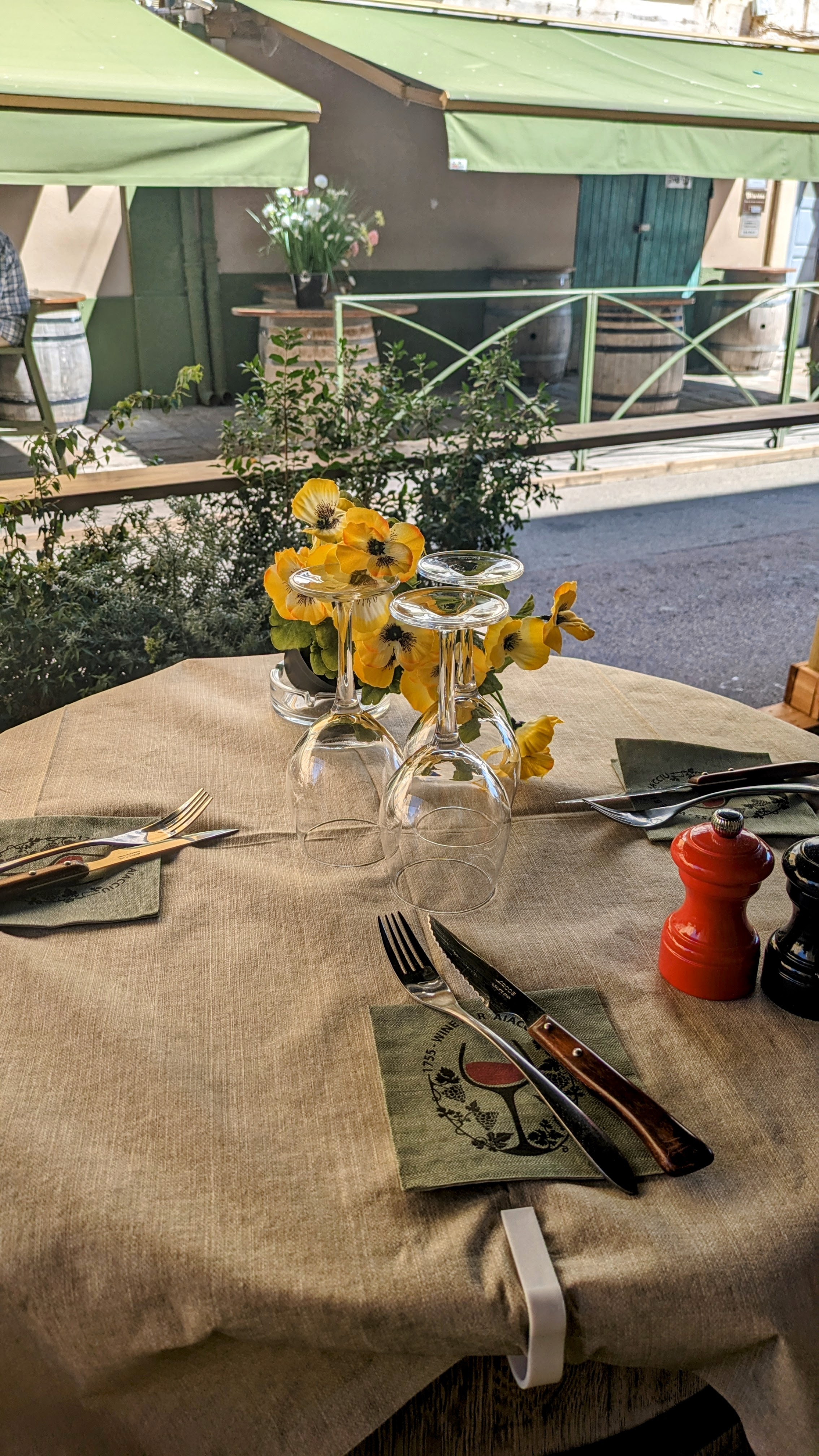Service épouvantable pour les touristes. Nous avons fait un effort pour parler en français pendant toute la durée de notre visite, mais l'équipe de service était très impolie et très inutile, roulant même des yeux lorsque nous parlions en français. Nous avons dû demander deux fois une assiette (qui n'est jamais arrivée) pour pouvoir tremper notre pain dans l'huile d'olive, que nous avons également dû demander deux fois. C'est aussi un cauchemar pour payer la facture. Ne vous embêtez pas si vous n’êtes pas corse.