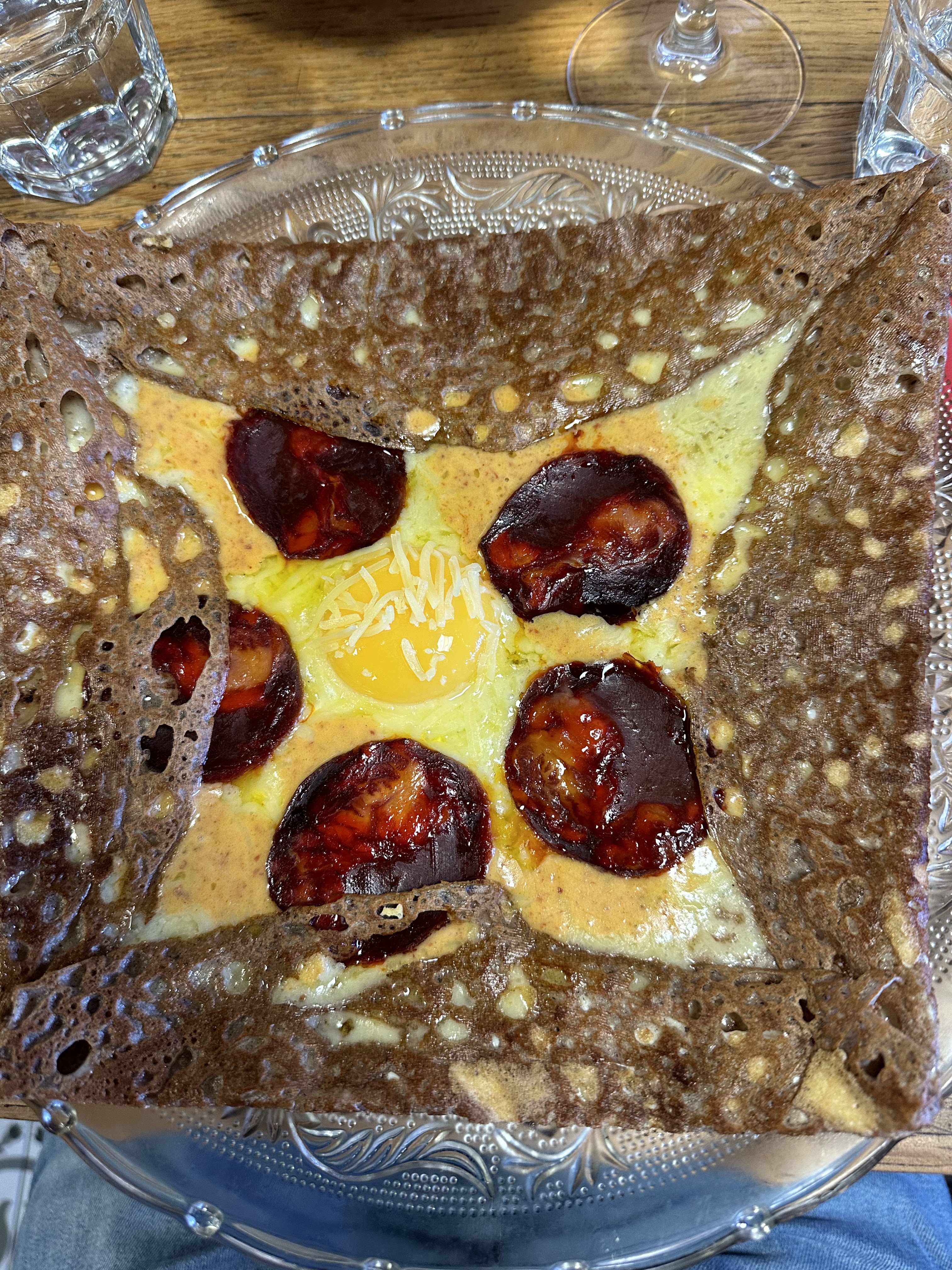 Alors super bon mais la lenteur des crêpes gâche un peu la soirée..une galette plus une crème sucre. Presque deux heures
