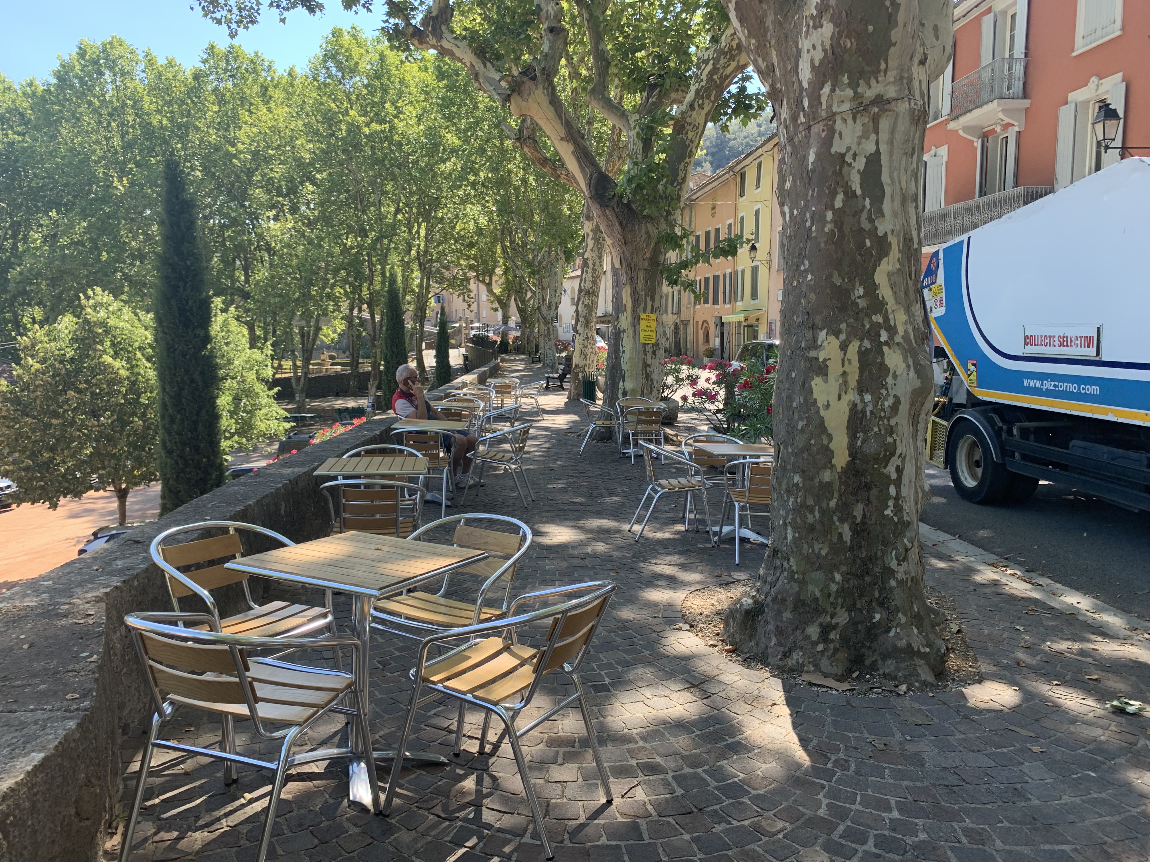 Super bien placé.,.d'où son nom....au choix...à l'ombre devant le bar ou à l'ombre sous les parasols avec vue plongeante sur le magnifique jardin qui se trouve en contrebat du non moins magnifique château d'Entrecasteaux , super bien reçu ....que demande le peuple