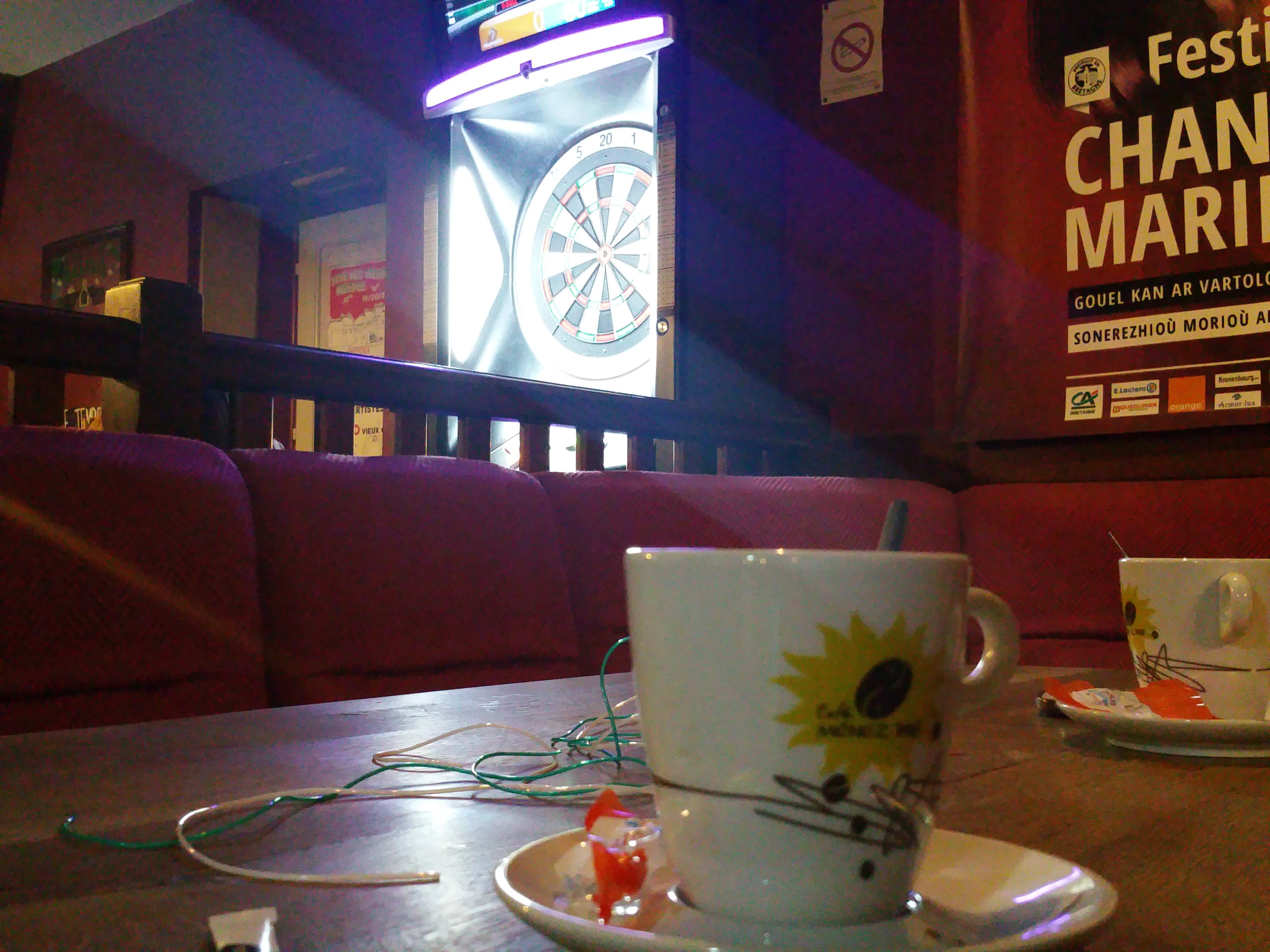 Bar mythique de Paimpol avec billards et jeux de fléchettes La terrasse est plein soleil l'après-midi Manque un peu de sourire avec le service ....