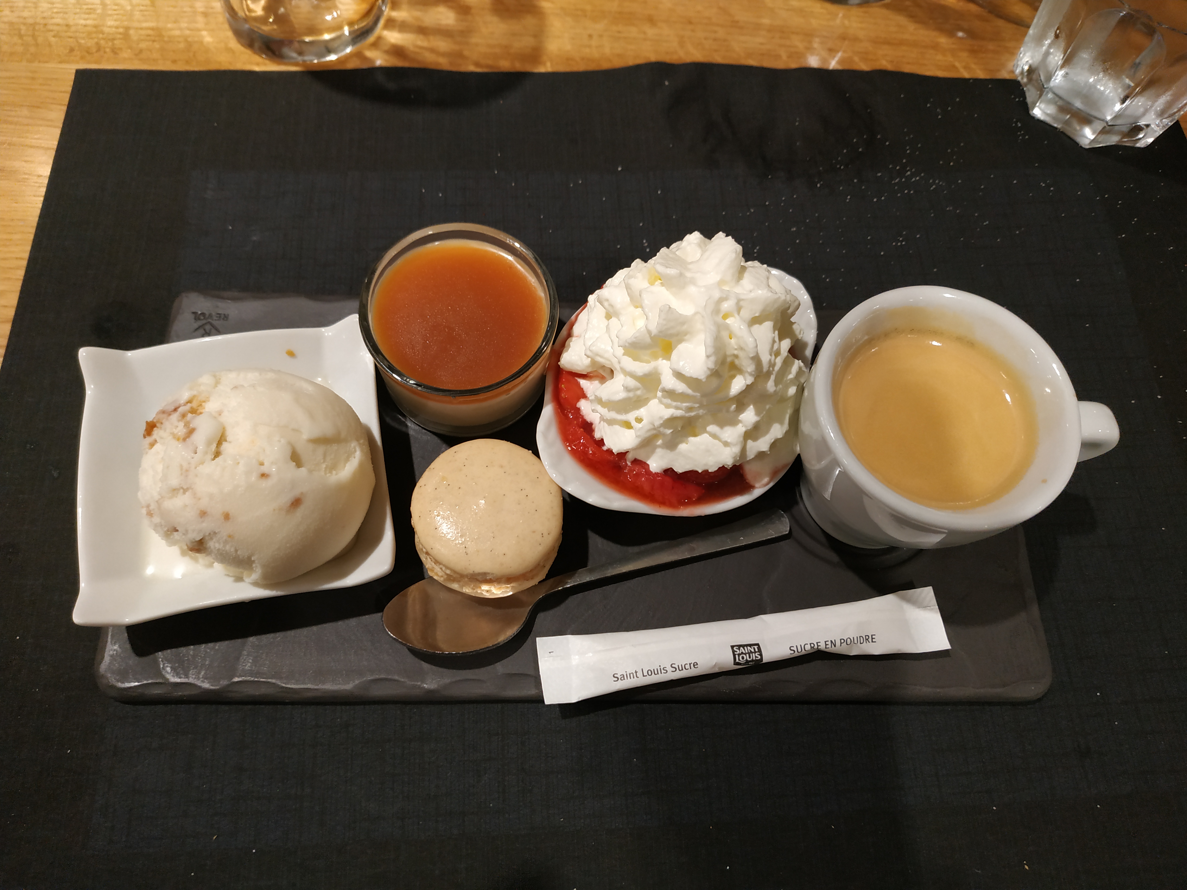Plat verre café 11,9€ très honnête pour l'emplacement