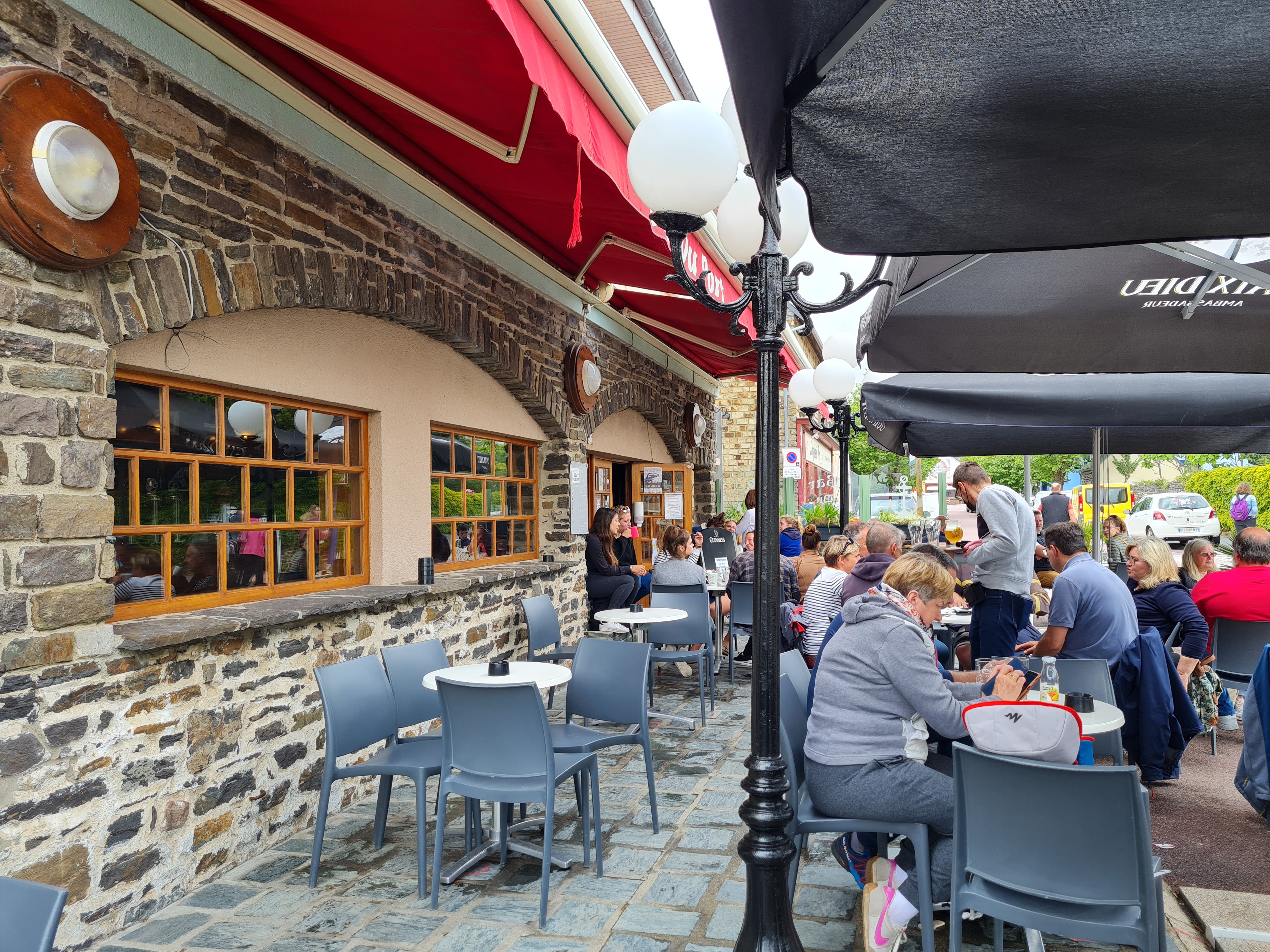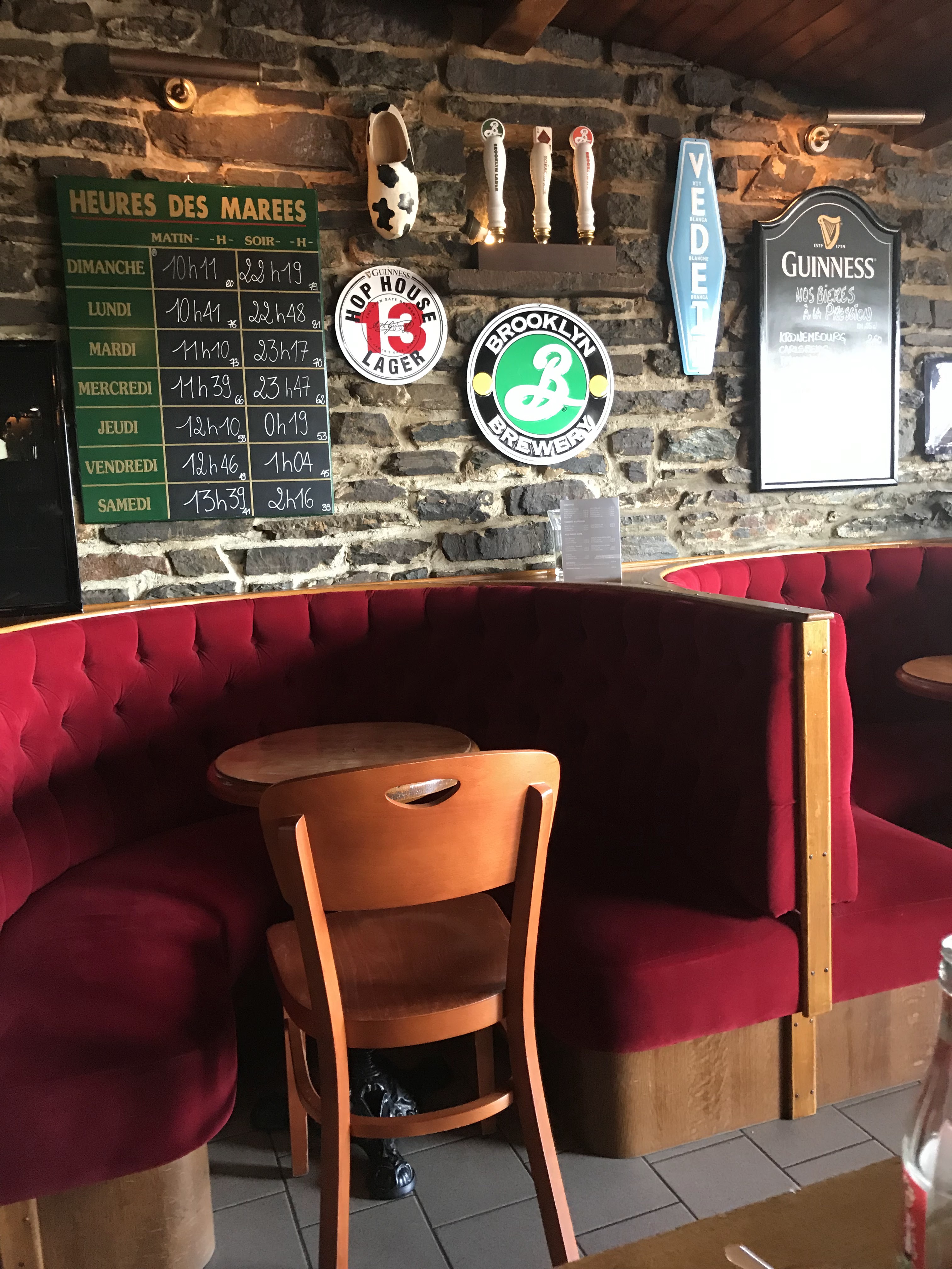 Bistrot typique sur le port de Carteret. Intérêt de la terrasse lorsqu'éole le permet