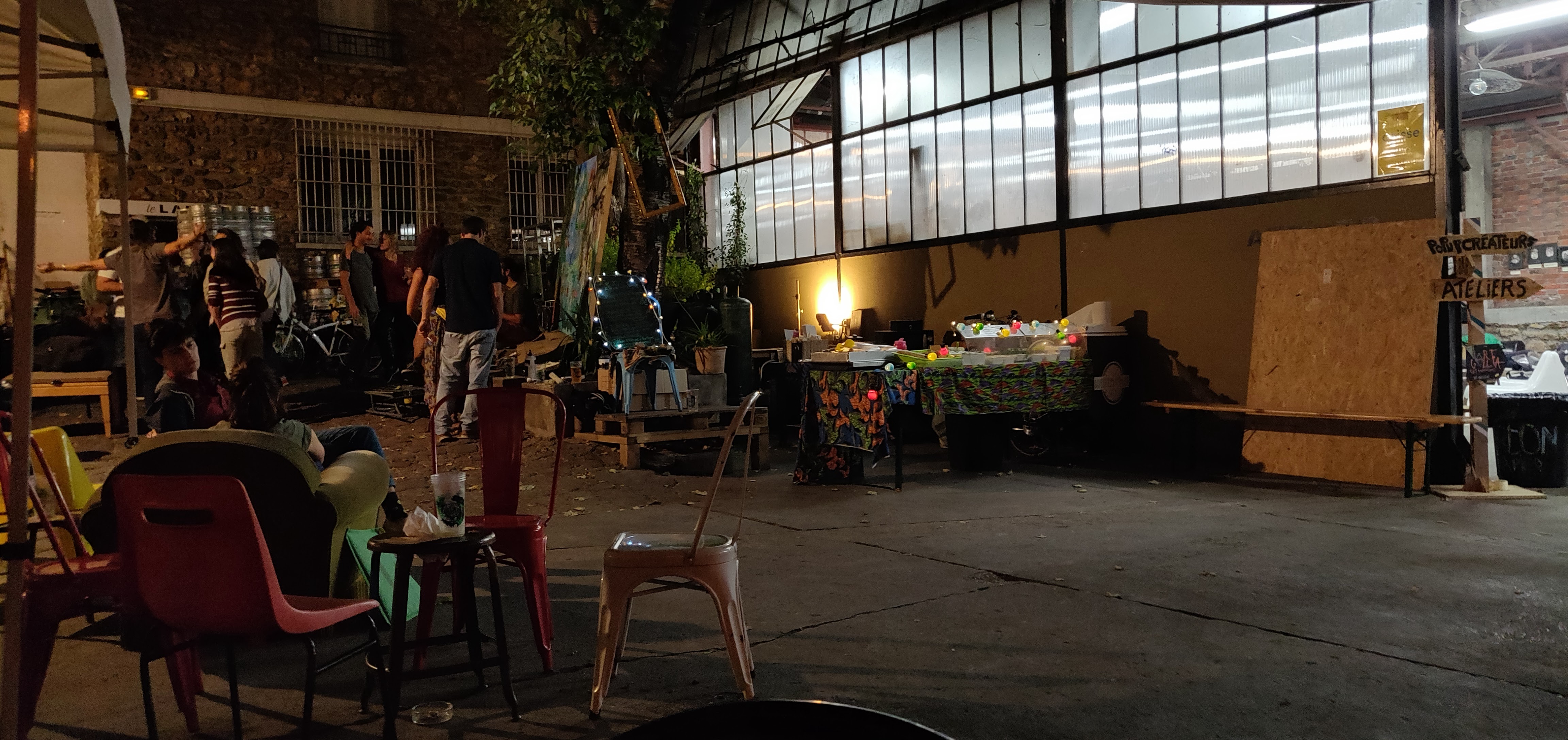 Voila le type d'endroits pour lequel je suis venu vivre à Pantin, et malheureusement encore trop peu nombreux... De la réhabilitation, de la recup, du style indus' ecolo et une ambiance façon Berlin... tout ca à l'abris des regards curieux tout en chatouillant l'ouïe du badaud avec du bon son qui lui dit : viens... entre......