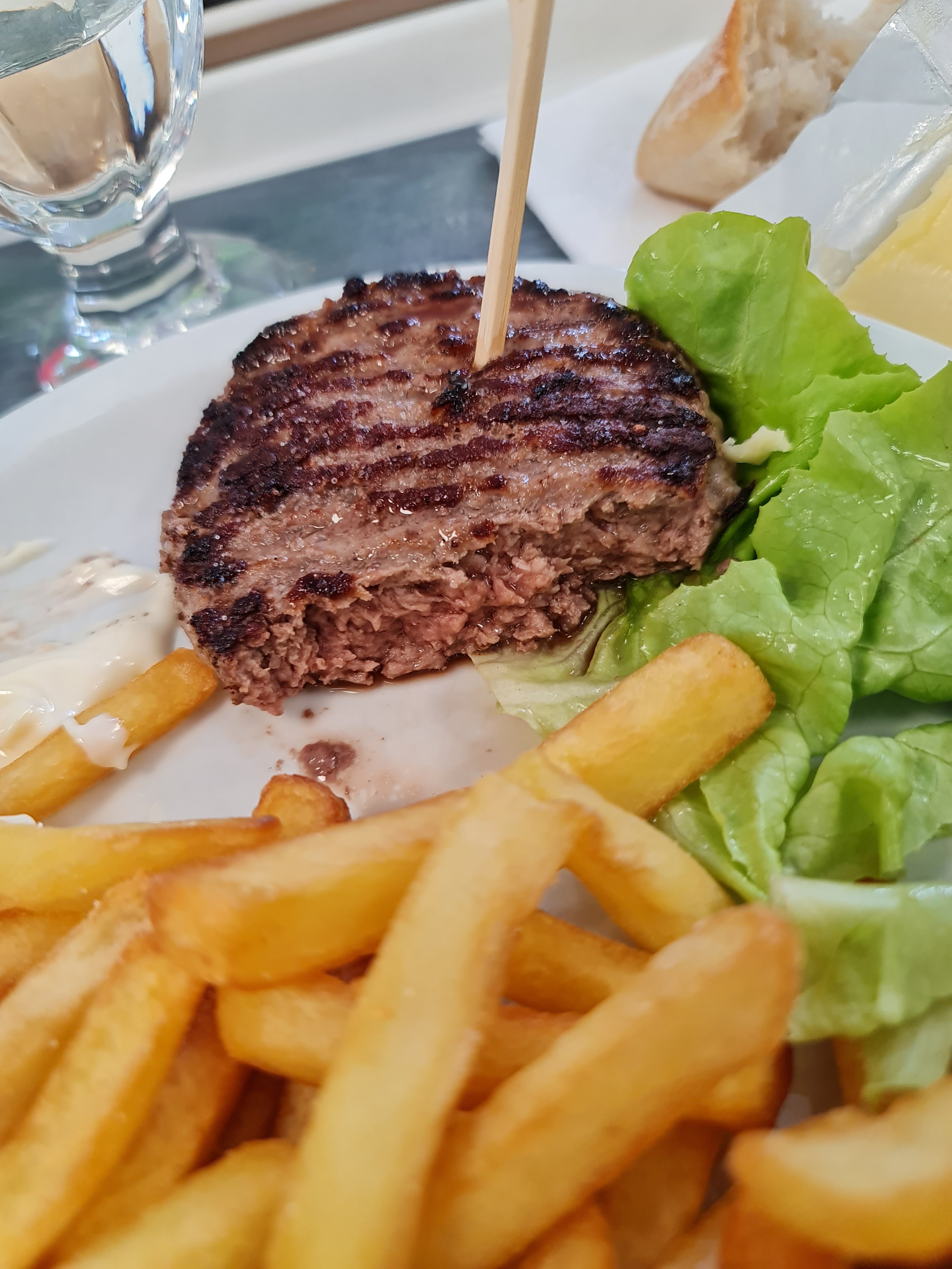 Super chère pour ce que c'est, quand on demande un steak saignant est qui est pas du tout saignant. Le point positif le pain etait bon et l'eau du robinet aussi