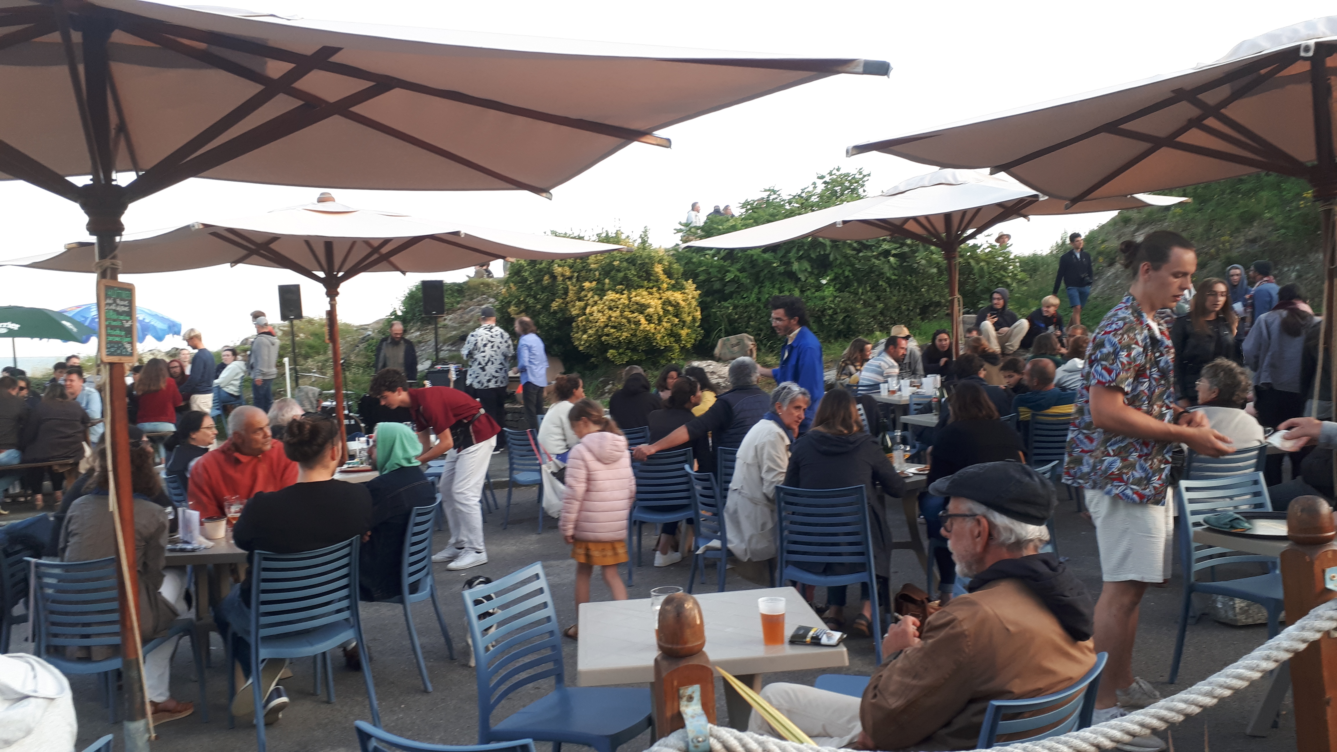 Génial, de quoi boire et mangerai dessus du petit port. Et un groupe en live qui nous a mis leur air en-tête pour tout le séjour. Les Vale que dalle, déjantés à écouter