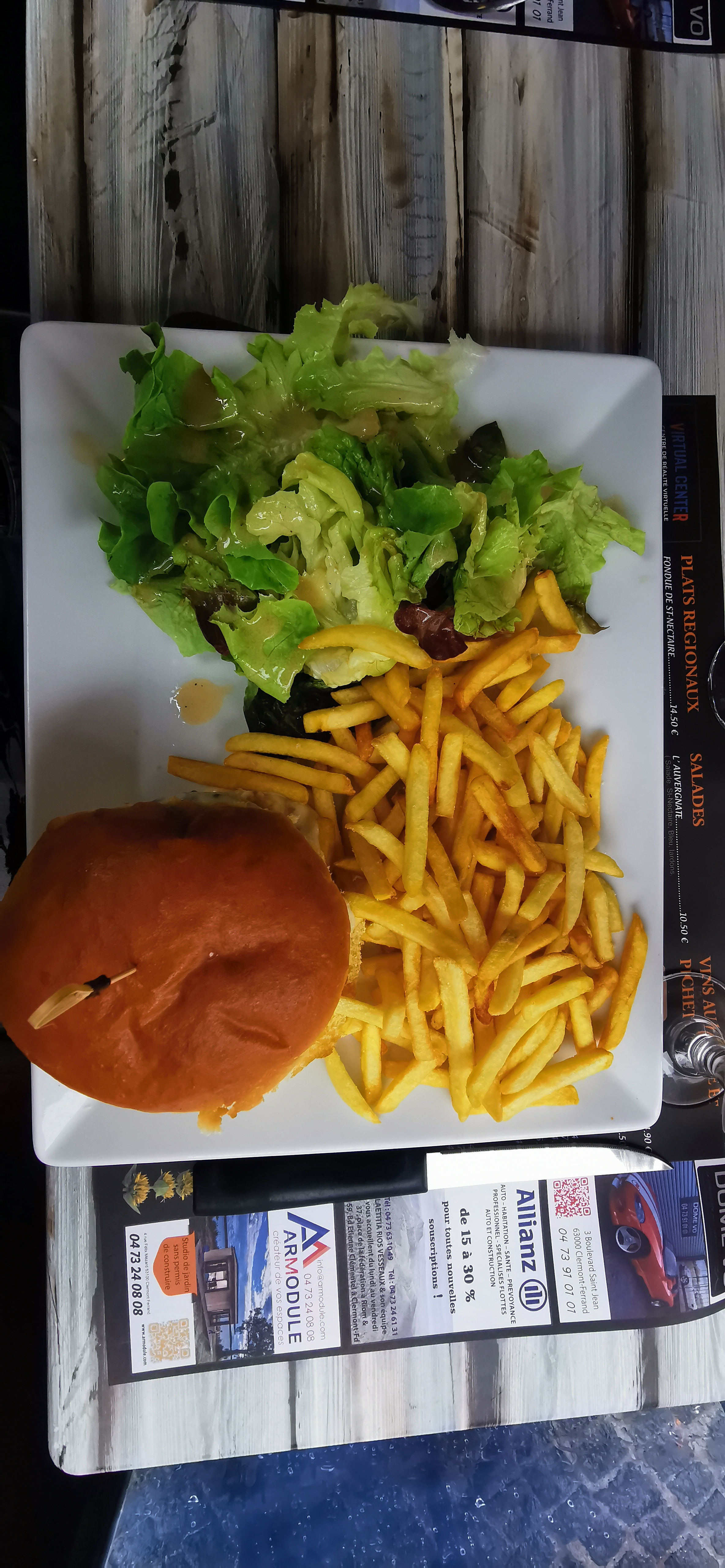 Bon accueil Service rapide quasi immédiat Assiette servie en quantité. Nous avons pris hamburger auvergnat et salade auvergnate, nous sommes ravis. Je recommande fortement