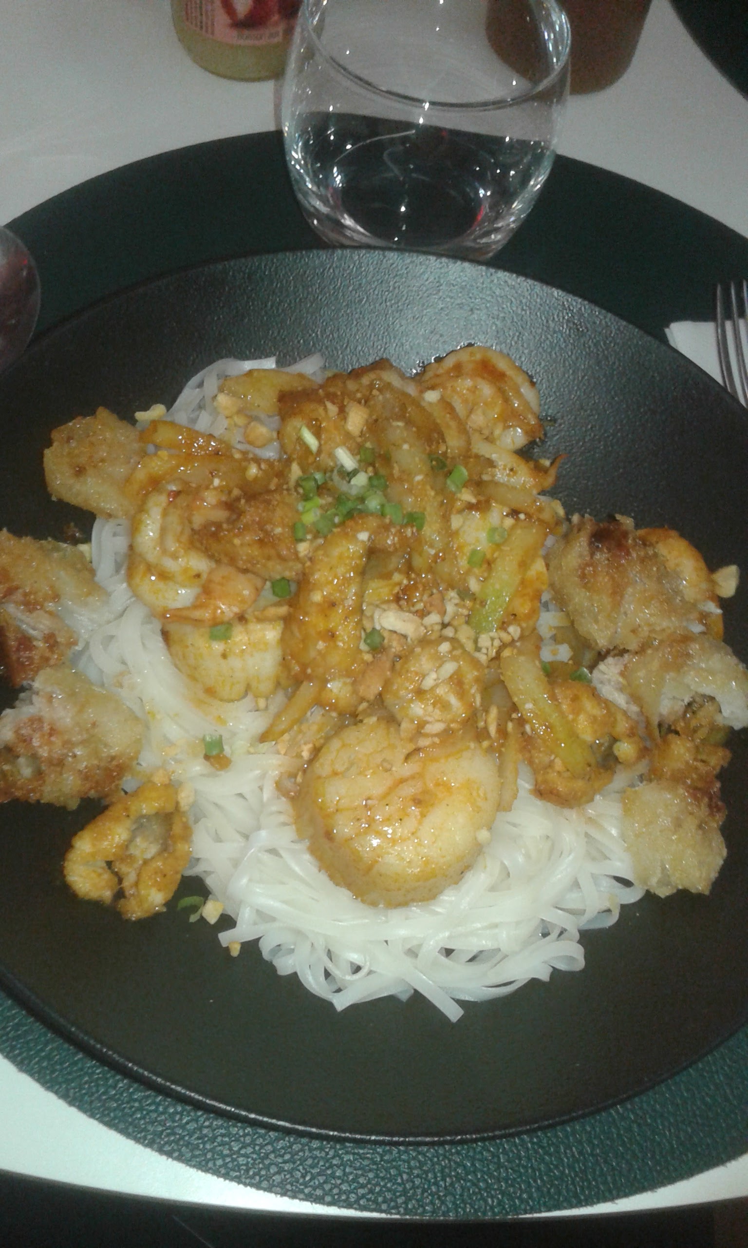 Jusqu’ici relativement satisfaite… Et puis j’ai voulu tester la salade « maison »... C’est une catastrophe : des crevettes insipides, de la salade en sachet, du soja, de très petits bouts de jambon et 3 (pas plus) morceaux de Nem. A 8€, ça fait mal. Le pire dans tout cela, c’est l’assaisonnement très fade. Se dire que dans un Fast food, c’est plus intéressant en termes de saveurs, ça aussi ça fait mal... Plat que j’ai pris à emporter, hors coup de feu. Ceci est pour moi éliminatoire.