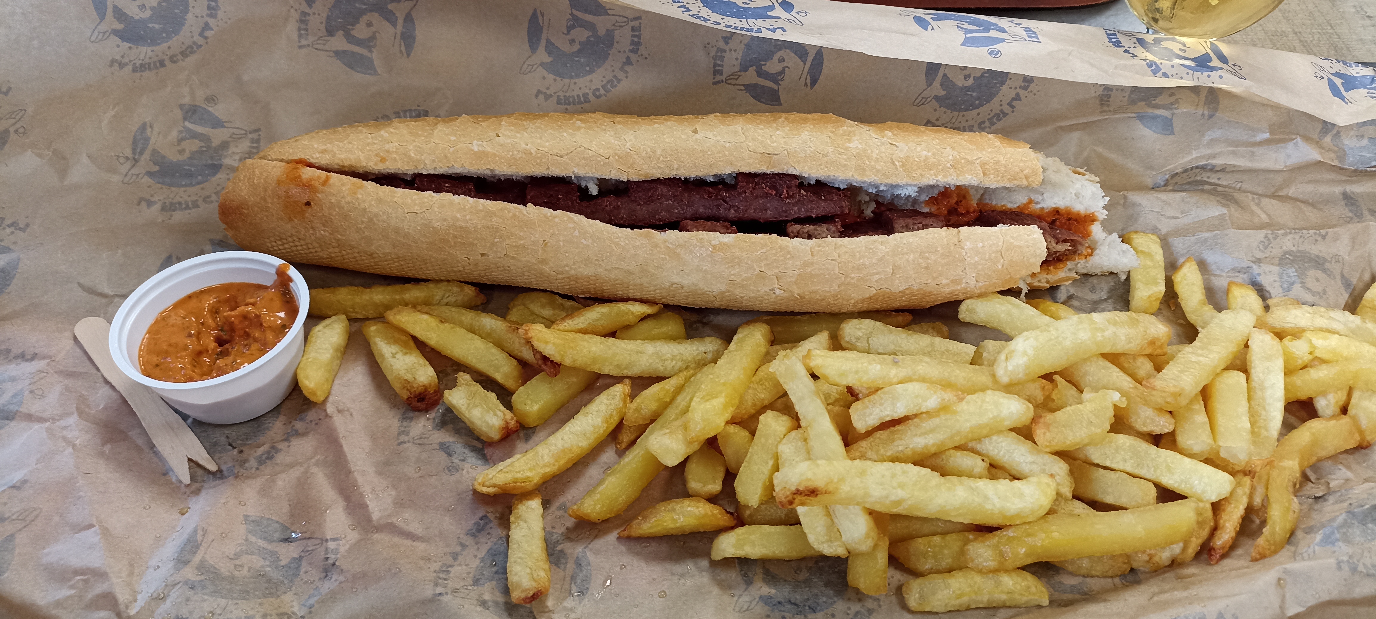Convivial. Idéal dans mon cas pour manger sur le pouce avec la friterie associée. Généreux et abordable. Très propre.