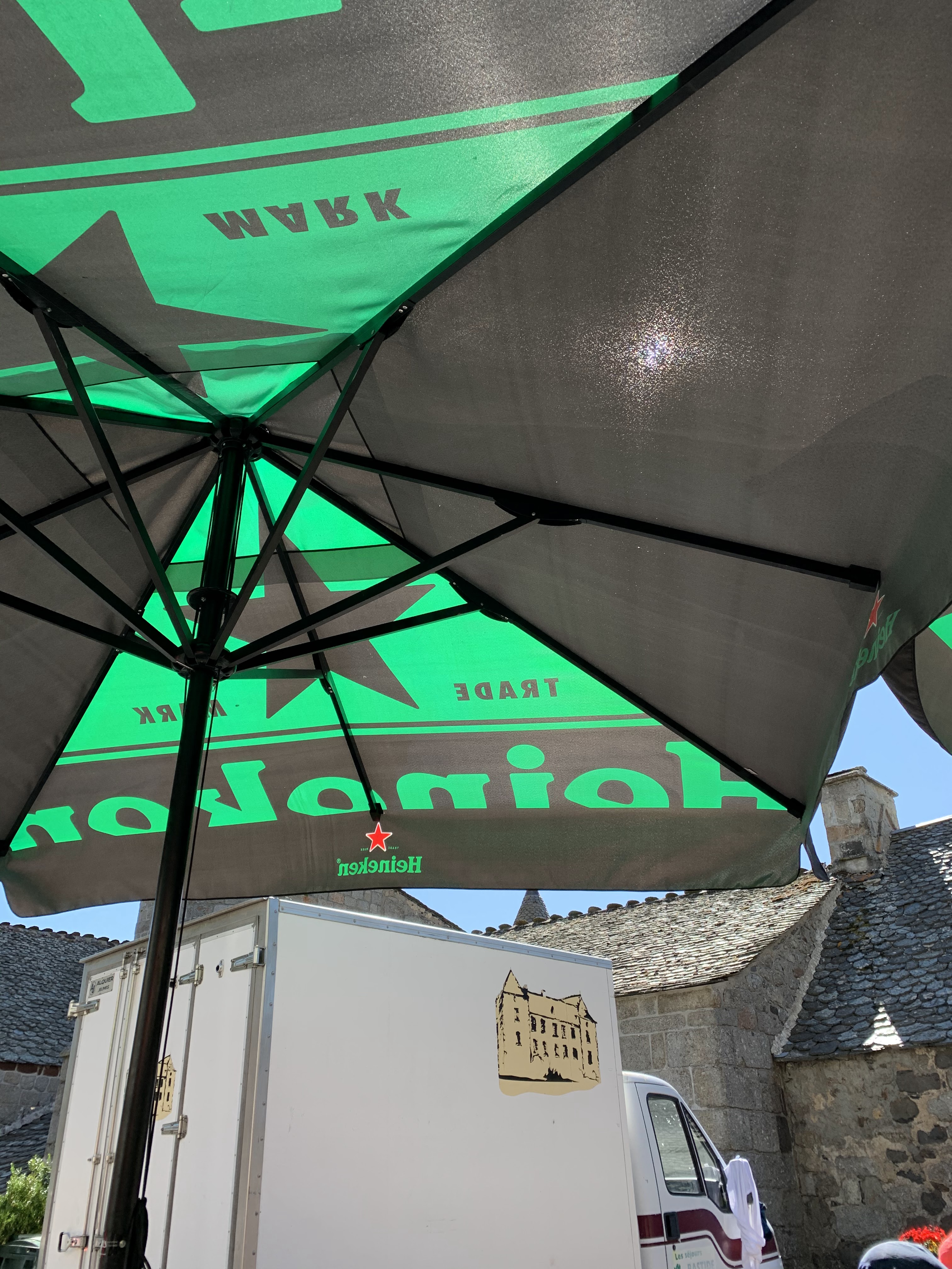 Grande terrasse ombragée, nous nous sommes arrêtés pour boire un verre. Serveurs très sympathiques. Un coca zéro avec plein de glaçons, très rafraîchissant !