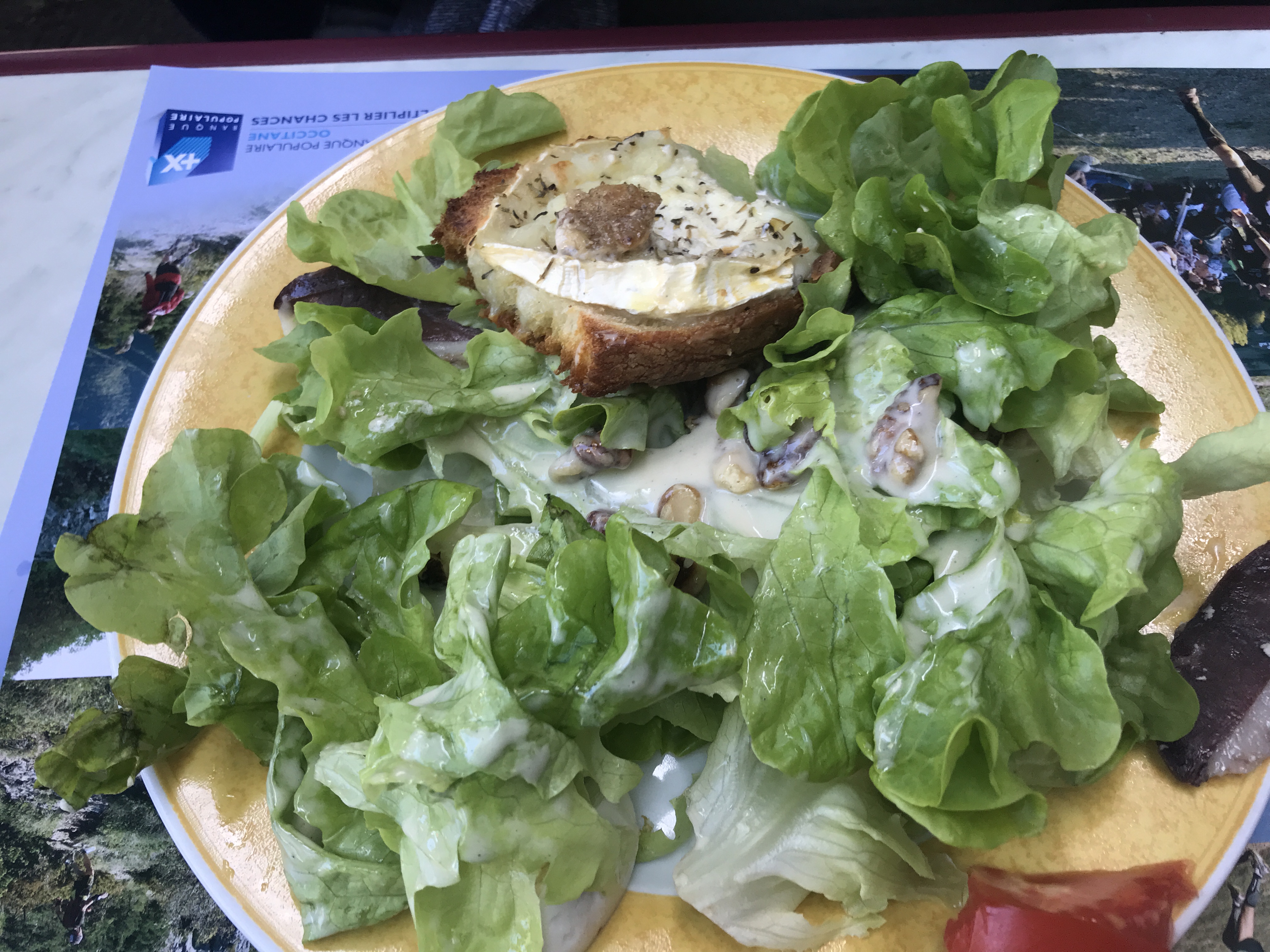 Un salade du pays généreuse et succulente, un aligot daube goûteux et le plateau de fromages et le désert. Un repas très généreux, une serveuse très professionnelle et sympathique. Restaurant à vraiment s'arrêter.