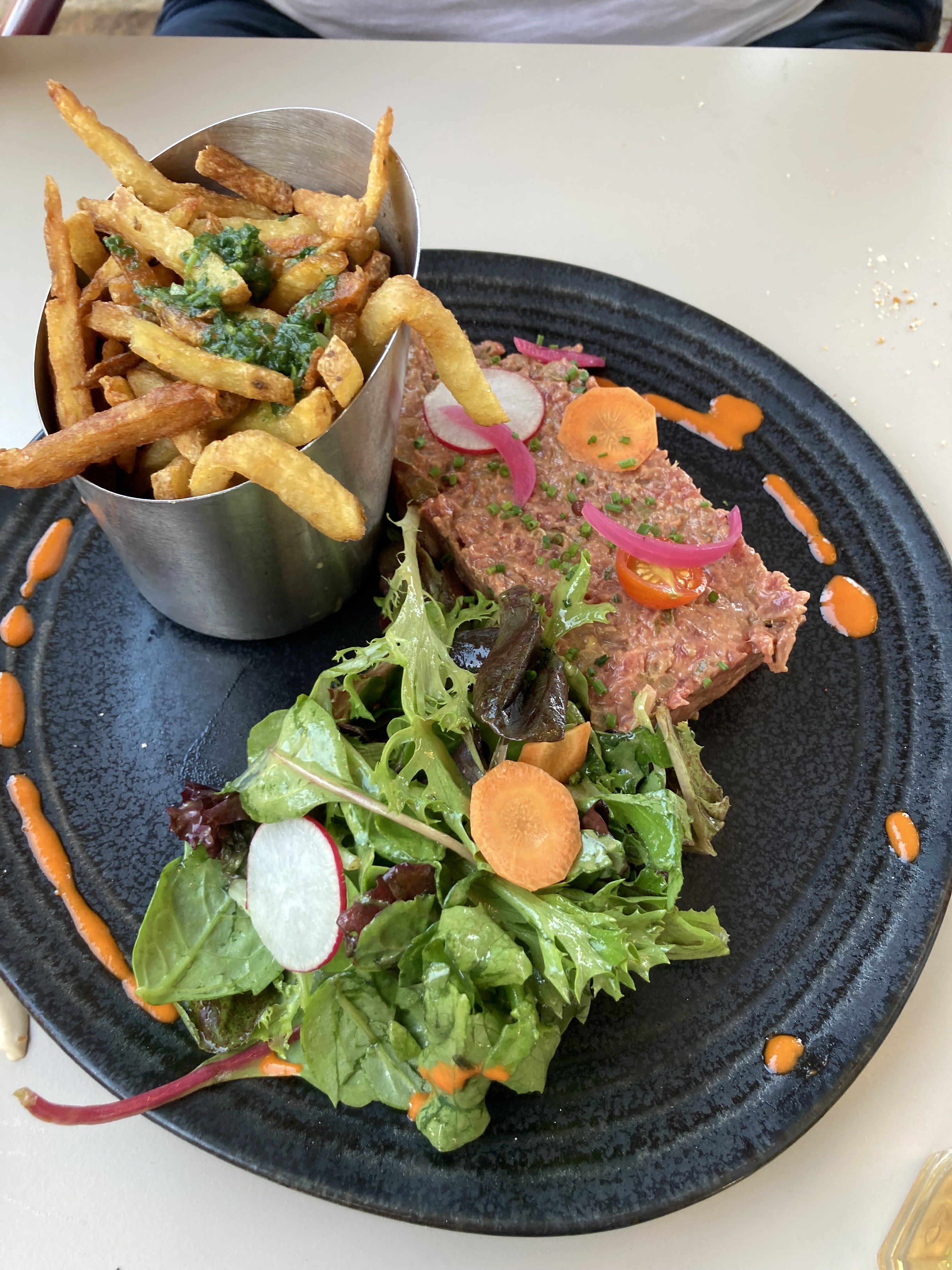 Très bonne table simple et d’excellente qualité, goûteuse .. et leurs planches à l’heure de l’apéro sont tip top et généreuses ! Le son aussi ! Bref un bel endroit !:)