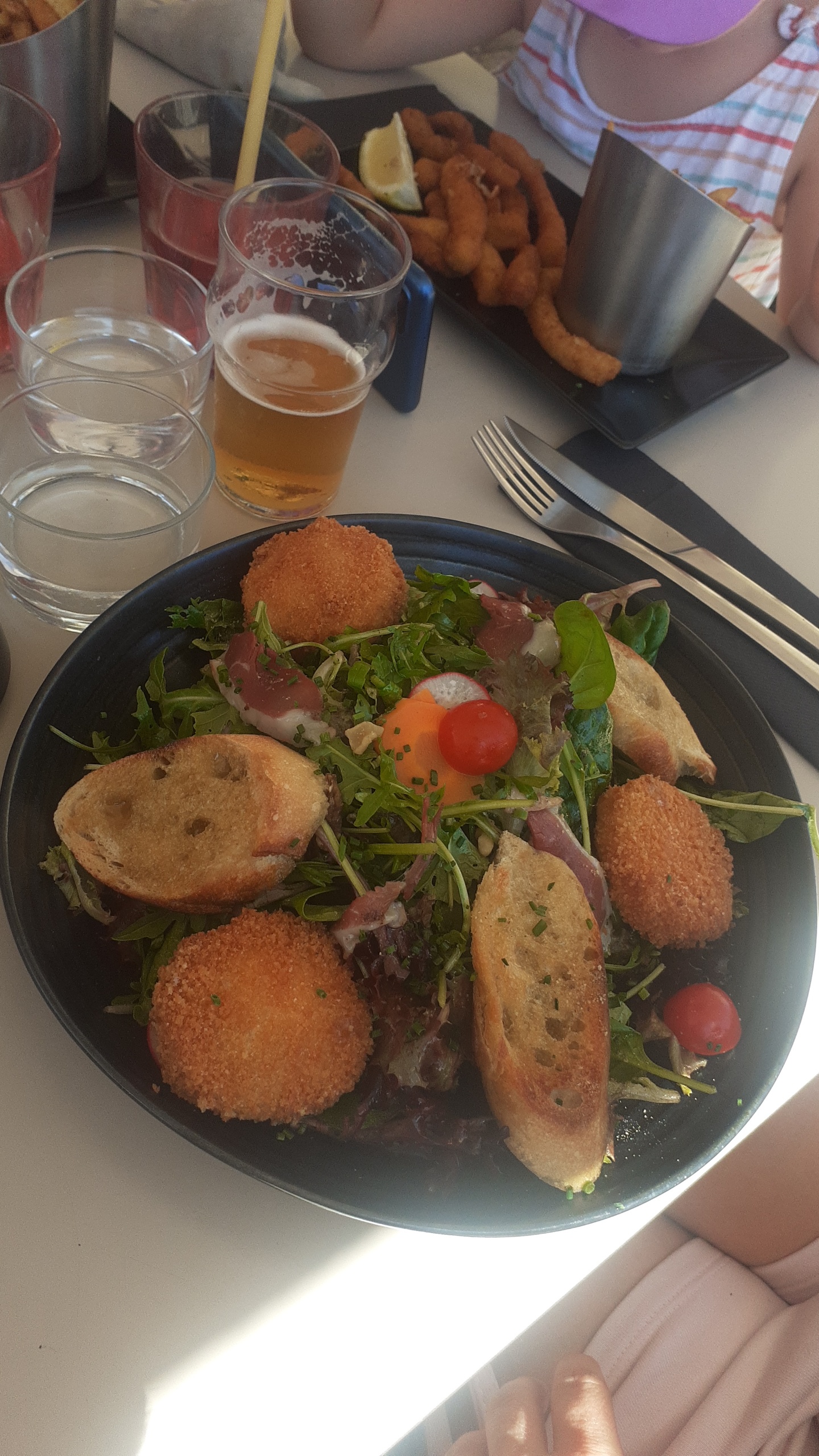 Apero dînatoire improvisé avec 3 planches pour 2 adultes et 3 enfants. Accueil sympathique. Ca fait plaisir de ne pas avoir l'impression de déranger avec 3 enfants. Les planches étaient excellentes et très copieuses. Prix raisonnable pour un bord de mer en saison On y retournera avant la fin de notre séjour. Bravo à vous