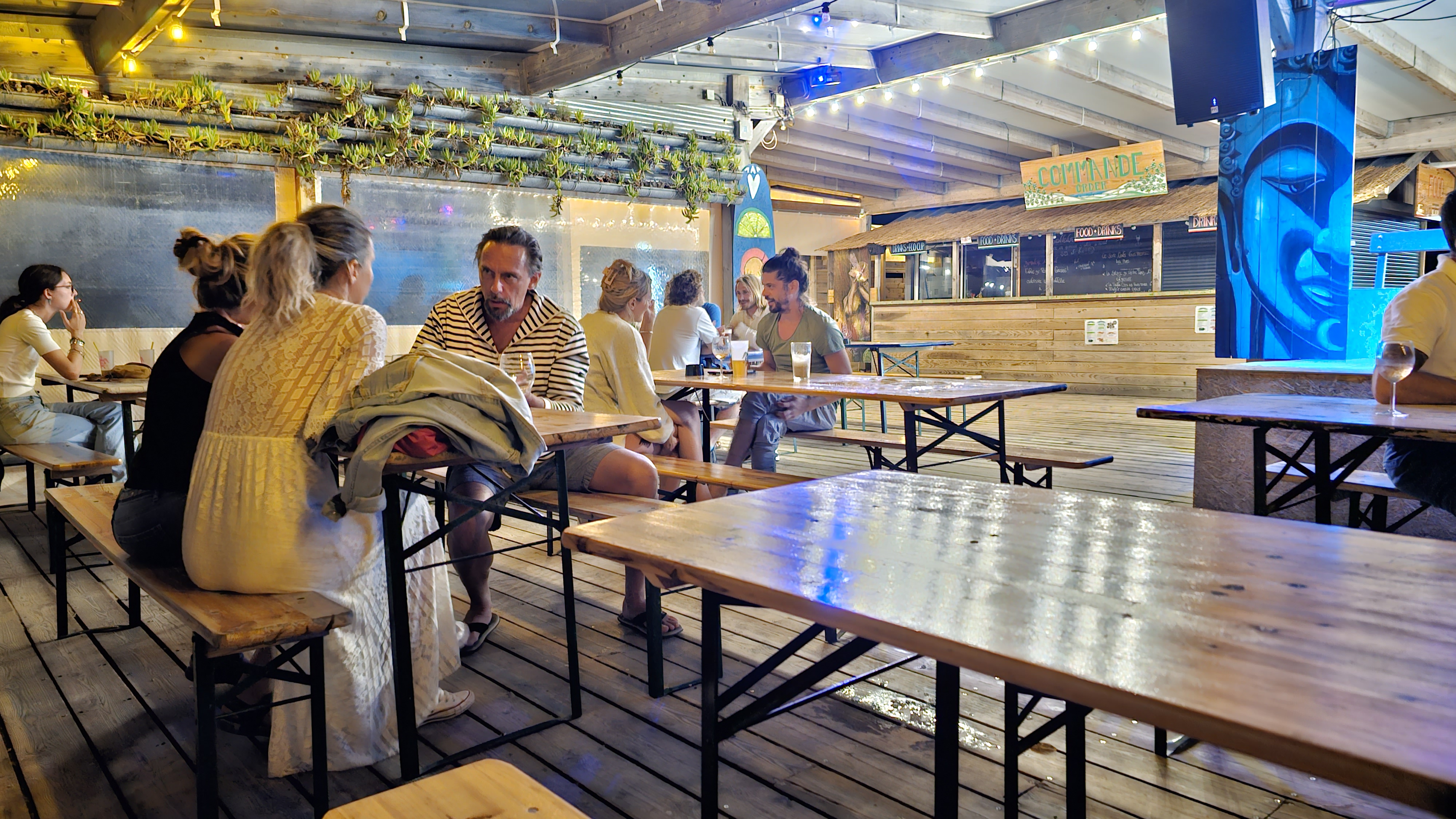 Qu'il est loin le temps où on mangeait bien et on pouvait boire tous les soirs entre amis ... Insupportable cette mode où c'est le client qui doit se lever et faire la queue pour commander,aller chercher ses boissons et sa nourriture... Le prix monte d'années en années et le service baisse ...pas grand chose à partager à l'apéro , plus de trucs conviviaux à grignoter à plusieurs à part tapenade...la carte , que dire... réduite au minimum...comment avoir un budget pour venir faire la fête tous les soirs, s'arrêter pour l'happy hour en remontant de la plage avec des tarifs aussi chers qu'en pleine ville... Bref on se sent devenir planche à billets. Bien sûr les concerts et la nostalgie nous font encore venir mais l'âme n'y est plus.... Gaïa je t'ai tant aimé...