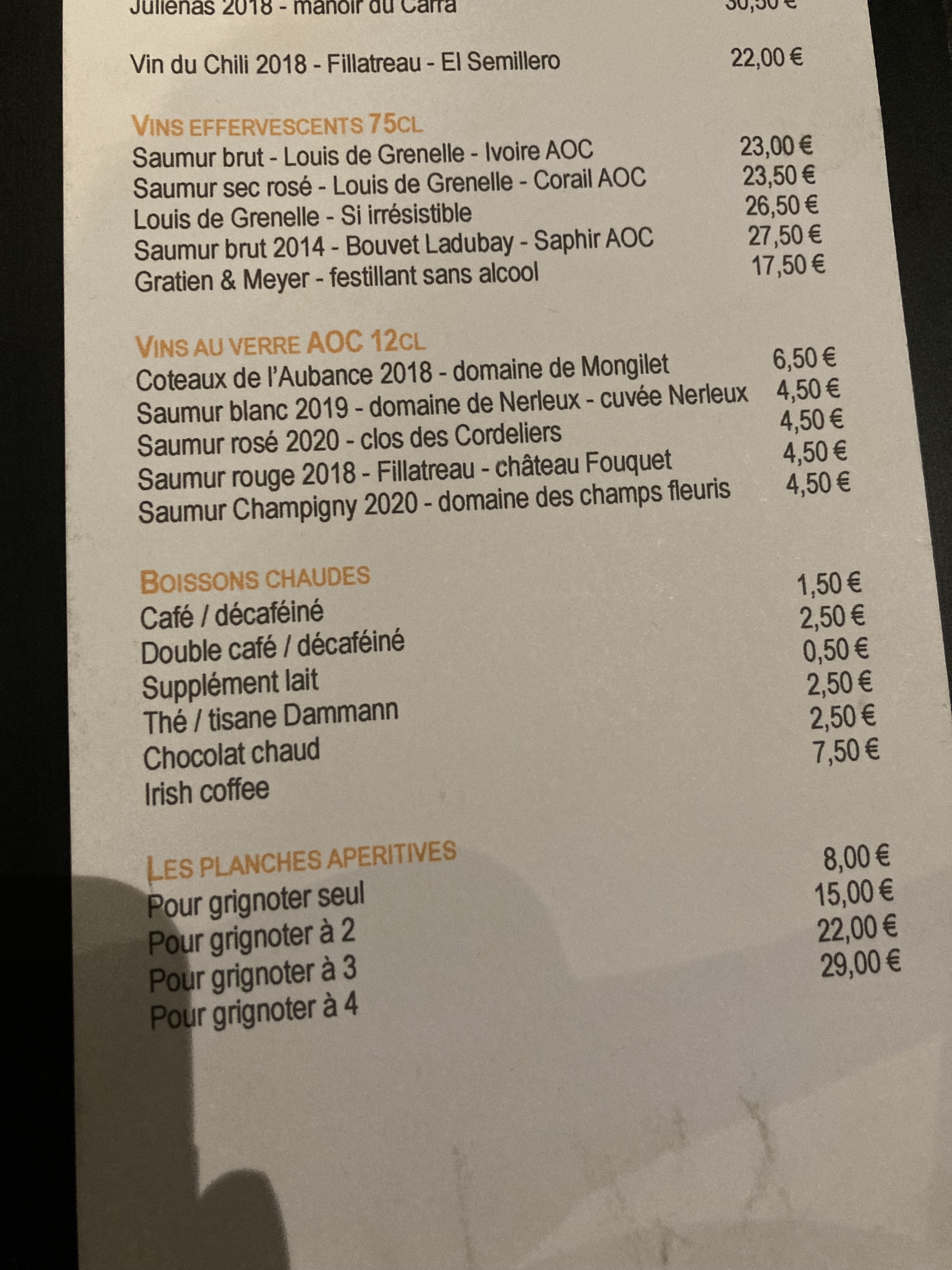 C'est un excellent établissement, dès les premiers pas dans ce restaurant nous nous sentons bien par le cadre ainsi que l'accueil. Le patron malgré son manque de personnel prends le temps de discuter avec vous. La carte est simple mais très efficace avec de quoi plaire à tous. Nous avons très très bien mangé, merci au cuisinier pour son travail. A refaire sans hésiter lors de notre prochain passage à Saumur.