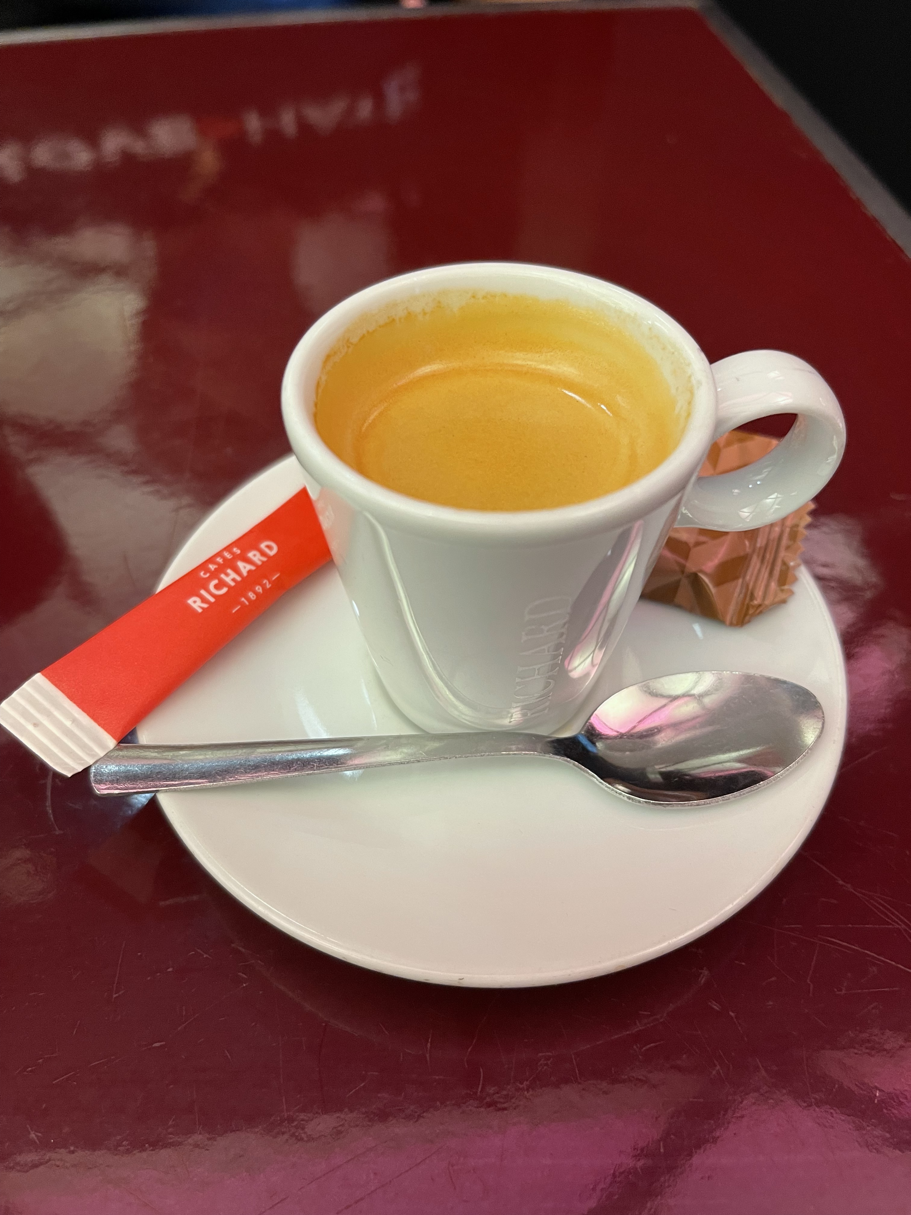 Bien placé, prix raisonnable. Personnel sympa. Pas de style très marqué à l'intérieur. Expresso 1,95€ (03/2023)