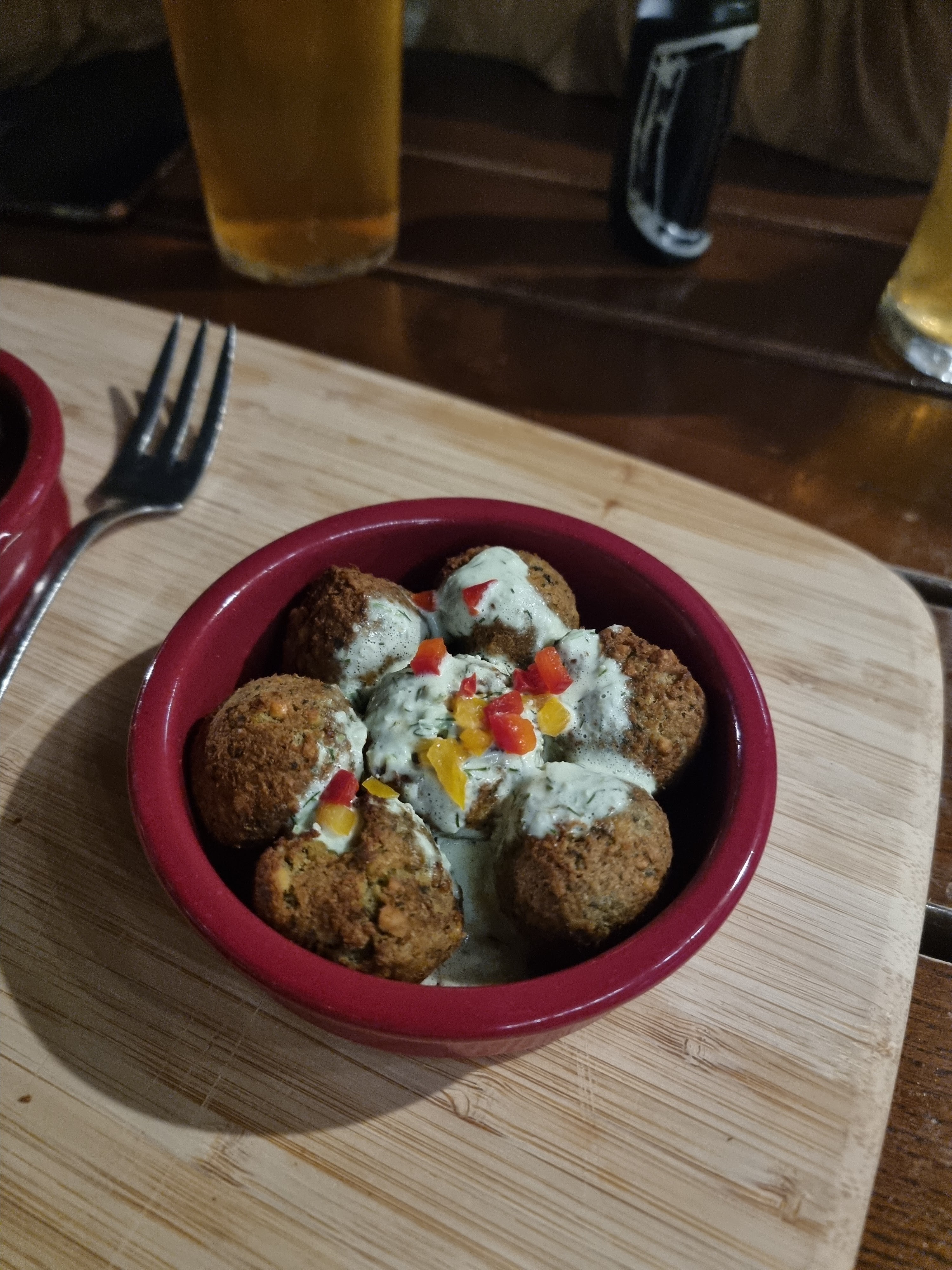 A éviter. 2 étoiles pour la gentillesse des serveurs mais ça mériterai 1 étoile. Bière à moitié renversé à son arrivé, 25min d'attente pr être servis, presque 1h pour pouvoir commander de la nourriture qui est scandaleusement cher pour la quantité ! 7,50€ pour 6 falafel 7.50€ pour 4 boules de viande polpète. Je suis désolé mais c'est presque scandaleux. Je suis habitué des bars à Lyon, celui-ci est un attrape touristes. Ne pas y aller après 20h...