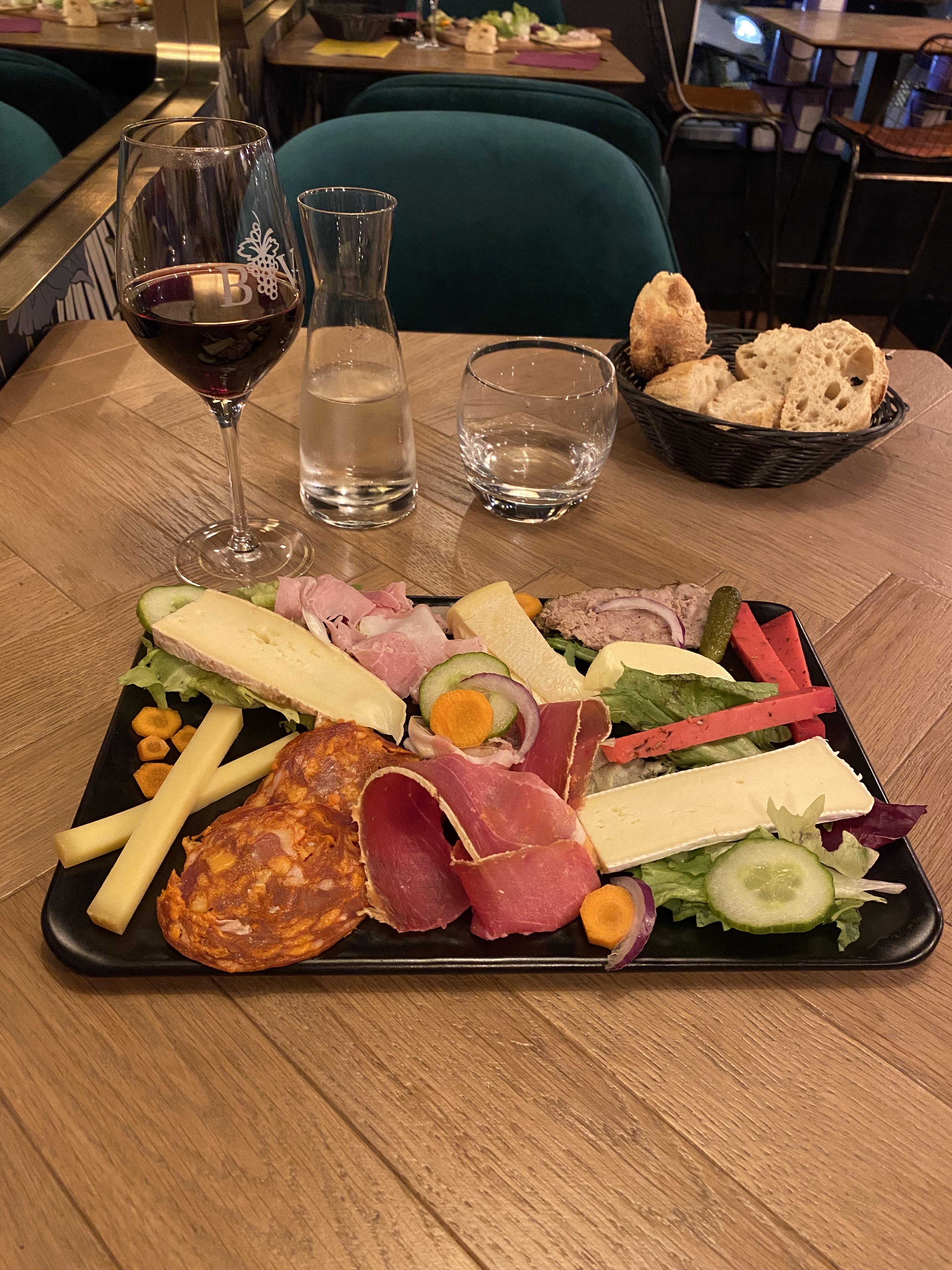 Excellente planche de charcuteries et fromages, très bons vins (j’ai goûté les 3 vins du mois), ambiance cosy. Je reviendrai avec plaisir.