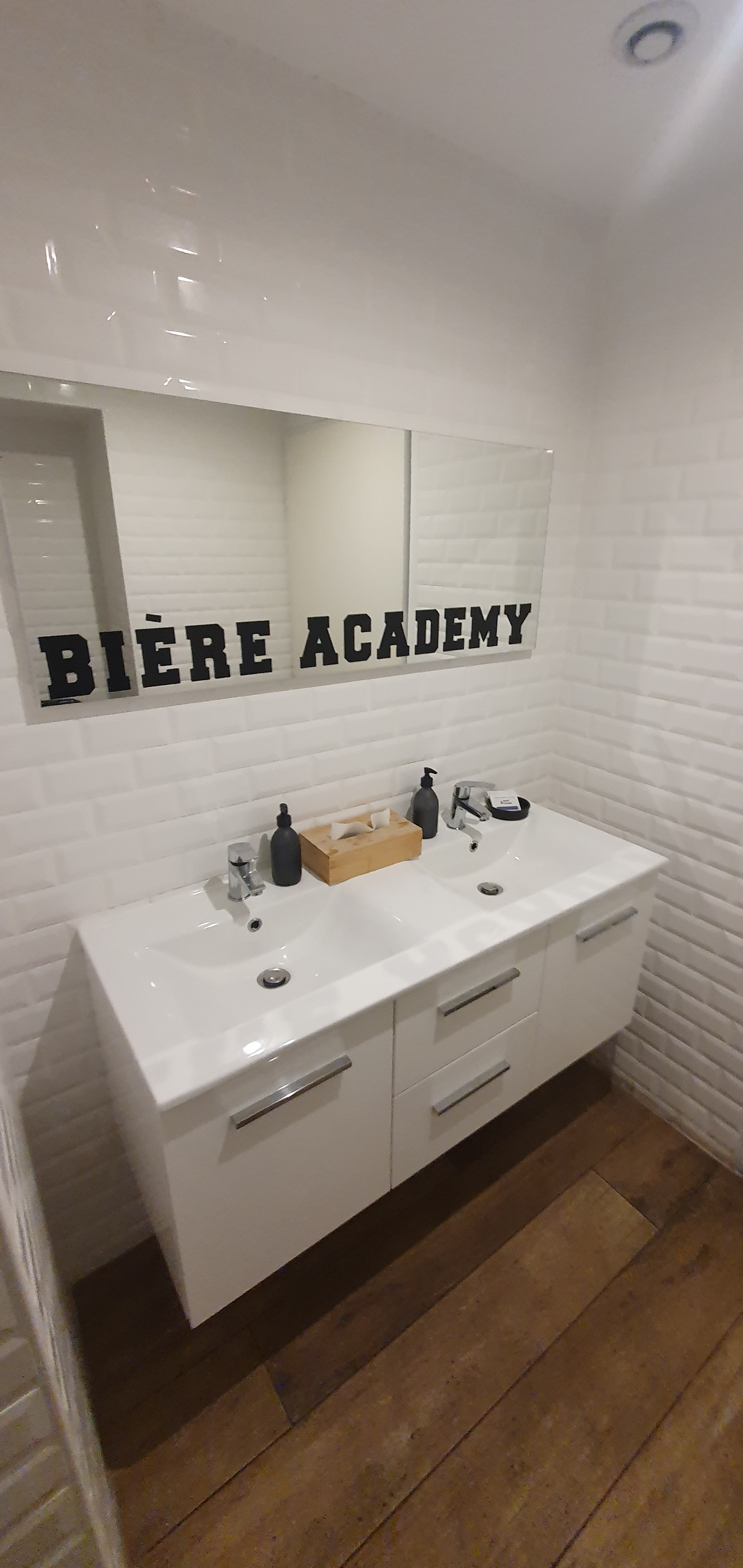 Bière Academy. Le nom est tout trouvé et à la hauteur de la promesse. C’est agréable de discuter avec les serveurs.euses qui connaissent leurs produits et conseillent savamment et honnêtement les consommateurs. Les bières à la tireuse sont toujours différentes car c’est selon les commandes effectuées et les arrivages. Le mur intérieur où s’amoncellent des variétés inquantifiables de bières est beau à voir. Et, tout est consommable et/ou achetable. On peut même goûter une bière avant de passer commande. Je recommande cette échope vivement aux amateurs comme aux initiés de la bière ! BRAVO !
