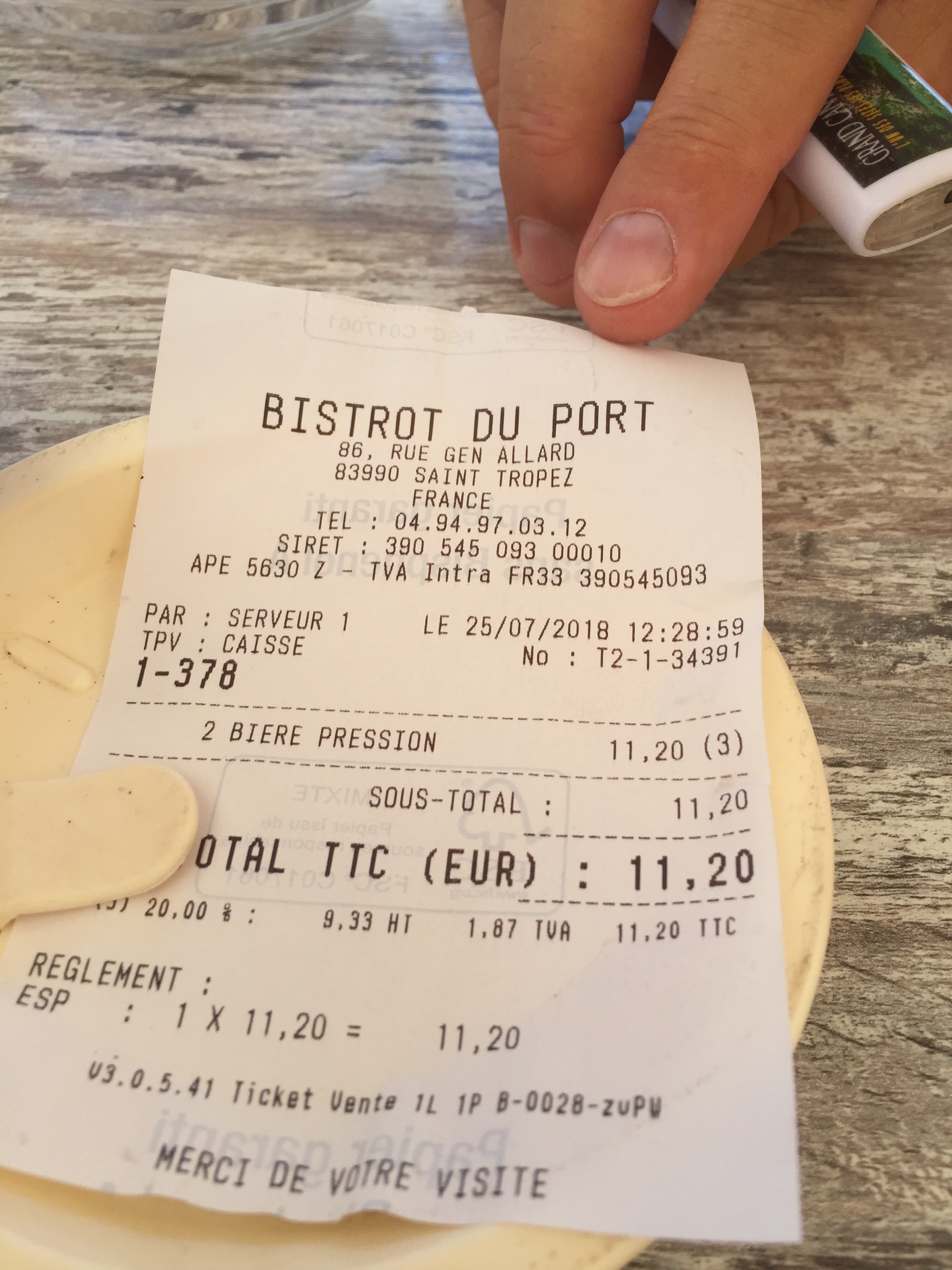 La note est salée, 13,50 eu la bière en 50cl, vive saint Tropez !!!! Heureusement le serveur était sympa.