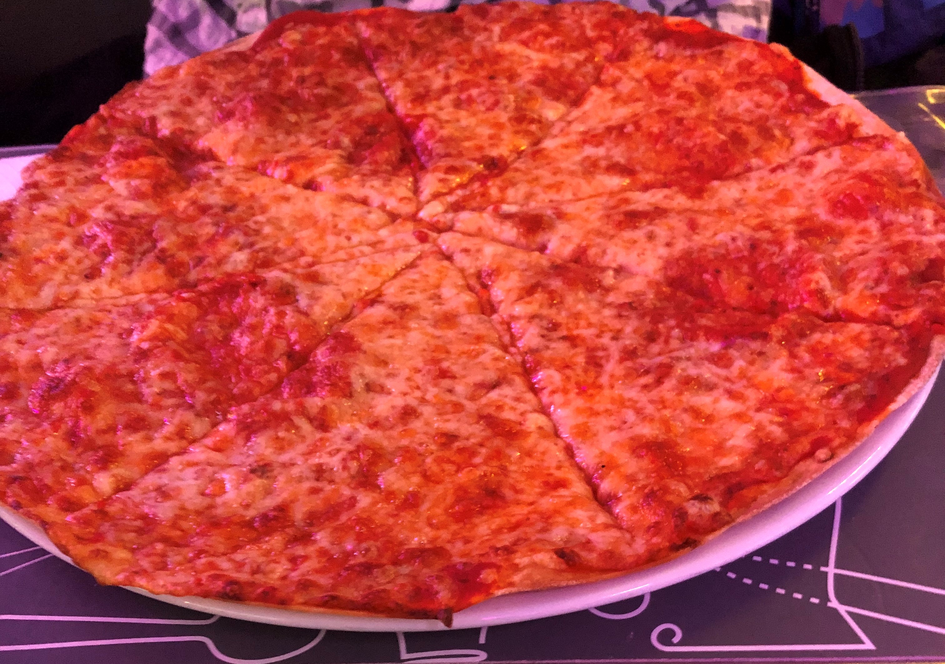 Le son de l'écran pour le match est beaucoup trop fort. Les pizza sont grosses et assez bonnes pour le prix.