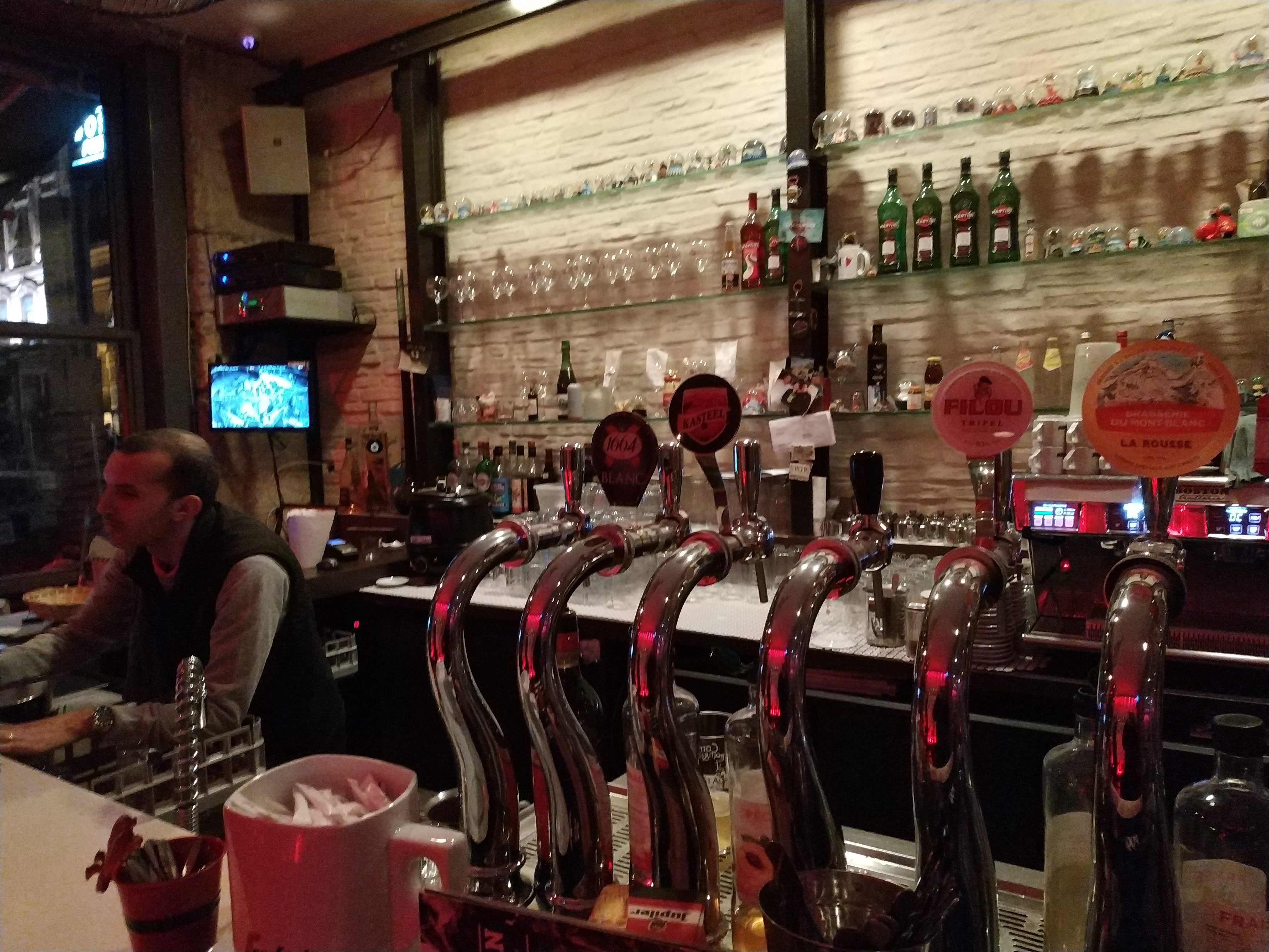 Grand bar avec une bonne ambiance et de bonnes bières. L'expérience aurait pu finir sur une bonne note si le serveur ne m'avait pas répondu J'ai pas le temps quand je lui ai commandé de l'eau en plus de ma bière... Service pas très pro