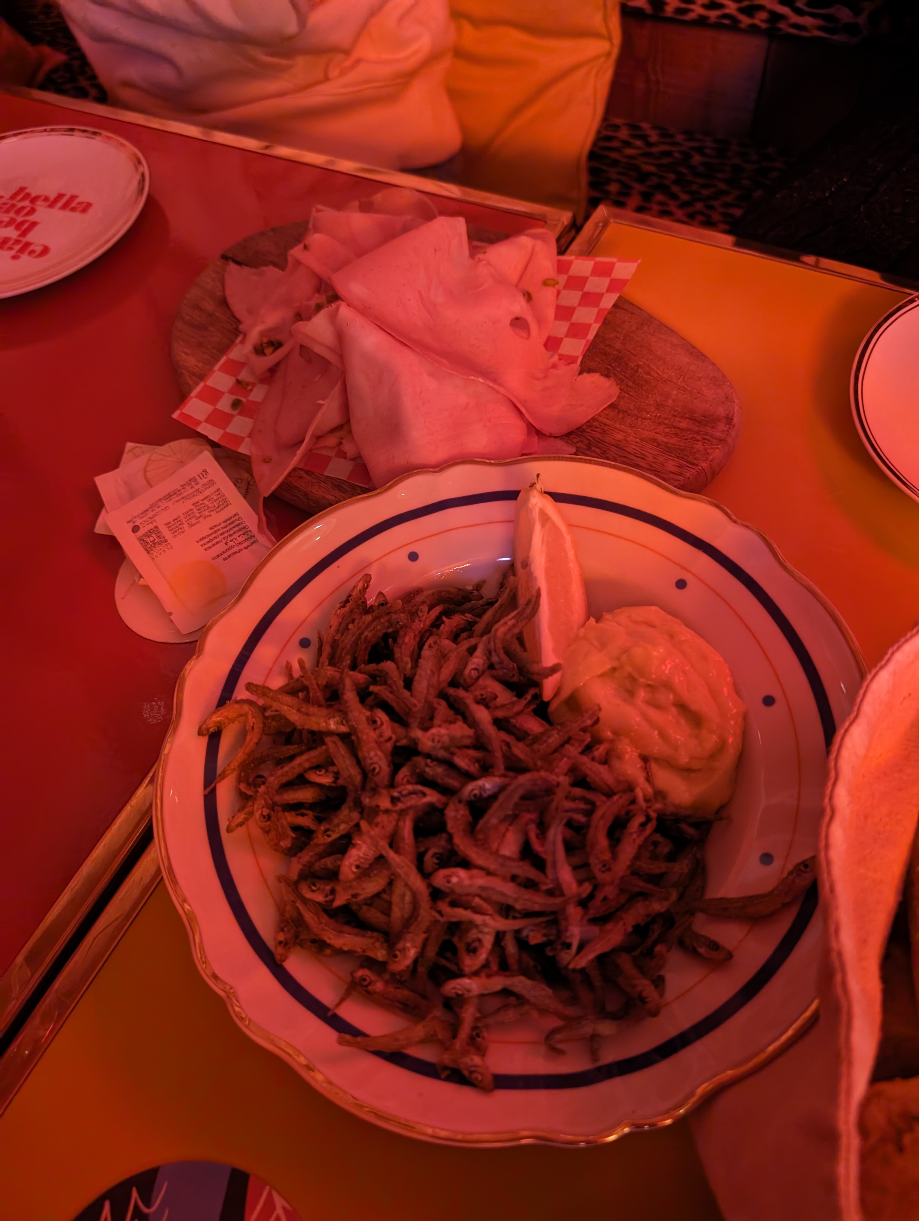 Que dire déco sympa, personnel au top particulièrement notre serveur +++. On prend des plats qu’on partage c’est ultra bon , surtout les croquettes d’aubergines et les éperlans étaient bien cuits. Merci pour ce moments