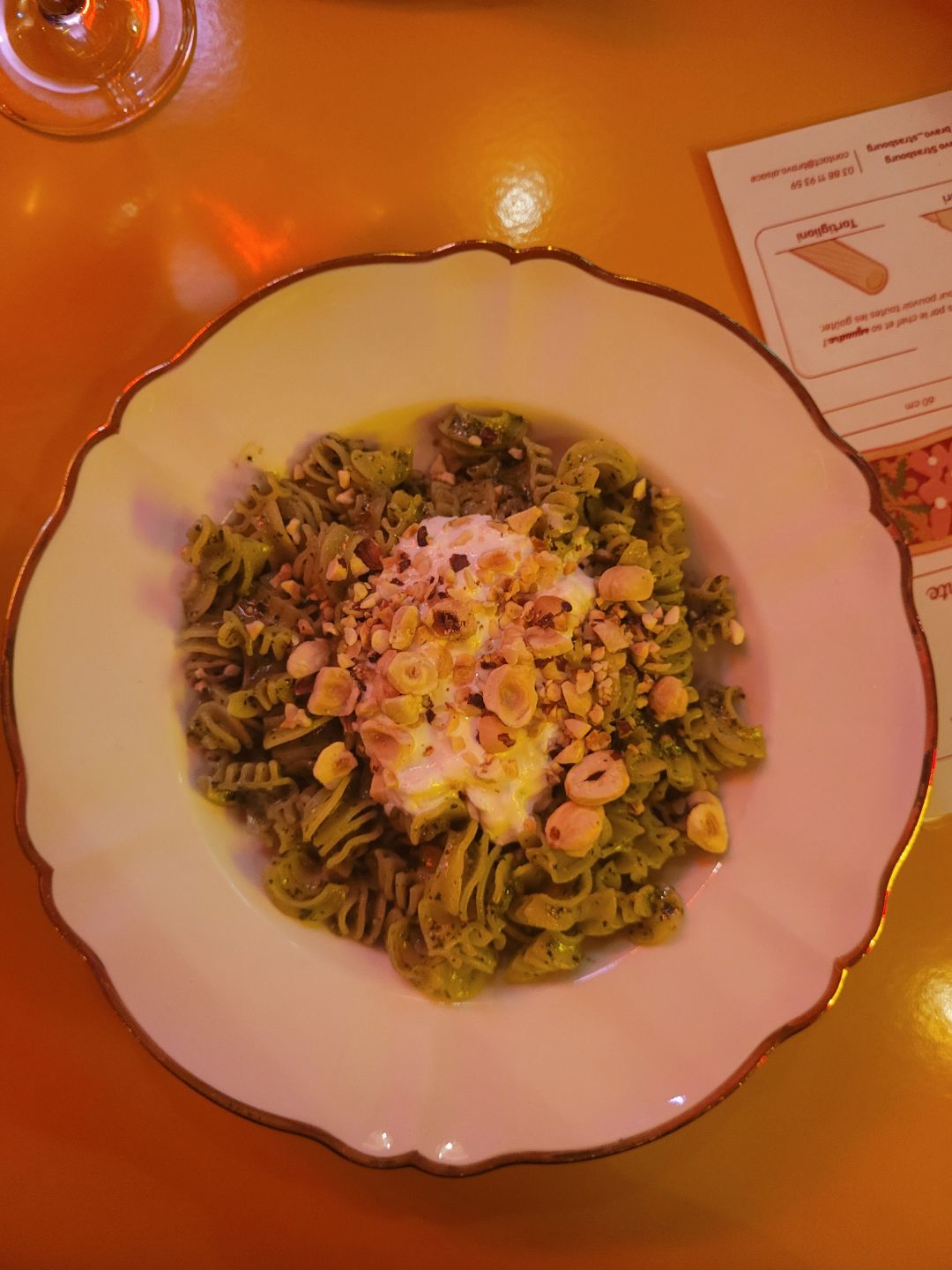 Superbe découverte. Personnel souriant et rapide. J’ai opté pour des pâtes au pesto qui était tout simplement délicieuse