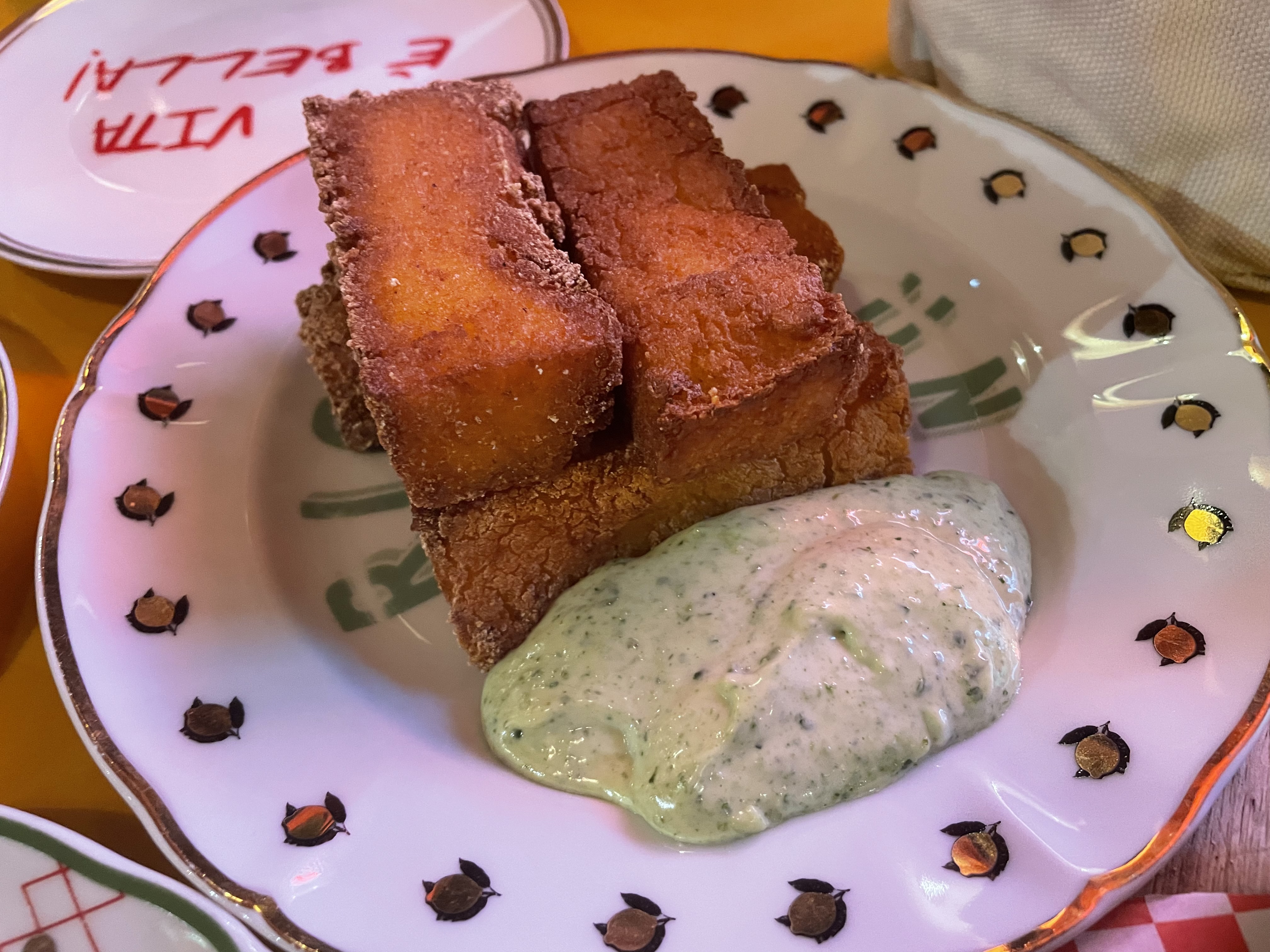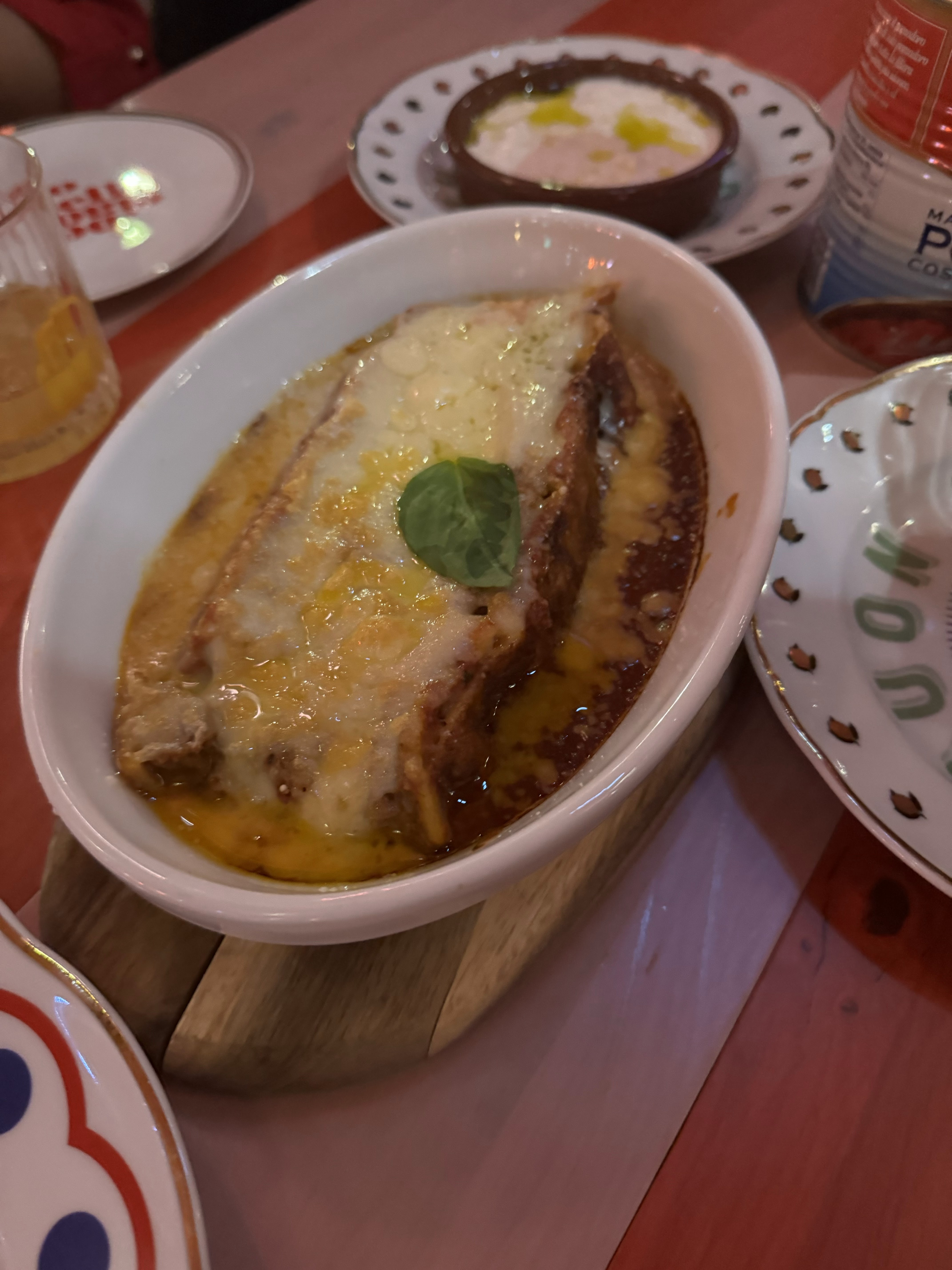 Lieu à la déco très chargée mais sympa, le seul bémol : la salle (nous étions dans la grande salle) est très bruyante (nous étions contents de sortir après le dîner), et surchauffée… Nous avons pris plusieurs plats à partager (pinsa, frites de polenta, buratta, pâtes…) qui étaient très bons, Et les serveurs étaient très souriants…