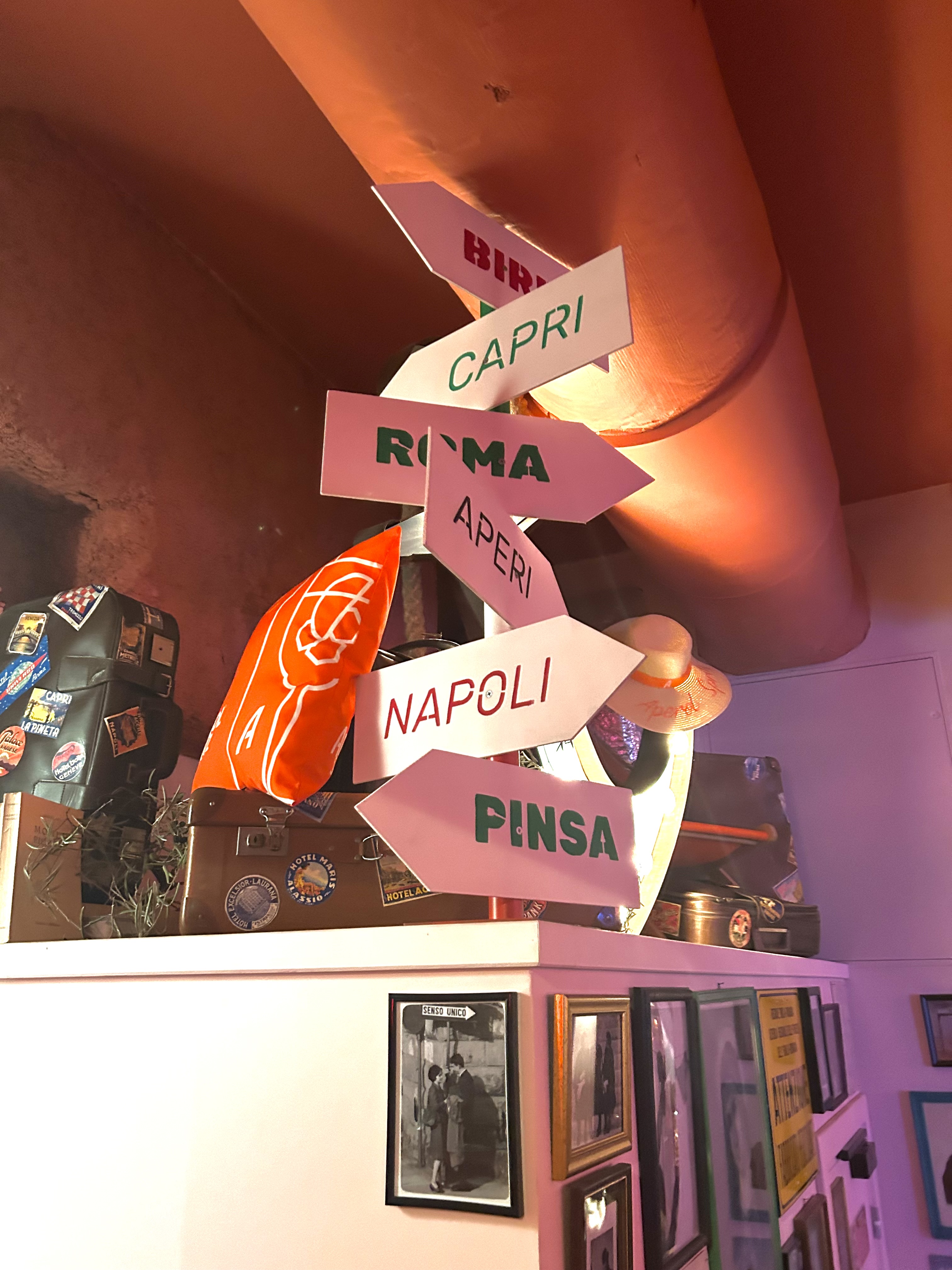 Bravissimo! Super concept de brasserie italienne sans pizzas. Ça permet de s'orienter vers d'autres plats de la cuisine italienne et faire de belles découvertes. Le gros point fort du restaurant est sa décoration vintage italienne, il y en a absolument PARTOUT, mention spéciale aux néons et la personnalisation des verres et assiettes, che bello! L'ambiance est assurée par de courtes sessions de karaoké sur fond de musique italienne. La qualité des plats et boissons est satisfaisante. J'ai testé la pinsa et les canolli avec 2 verres de Spritz et un shot de Frangelico. Petits bémols : mes amis ont attendu 1h pour recevoir des glaces (finalement offertes par la maison). Pour le prix, les portions mériteraient d'être un peu plus grandes Cette brasserie italienne est une pépite pour les amoureux de l'Italie. Un régal pour les yeux, les oreilles et les papilles. A la prossima!