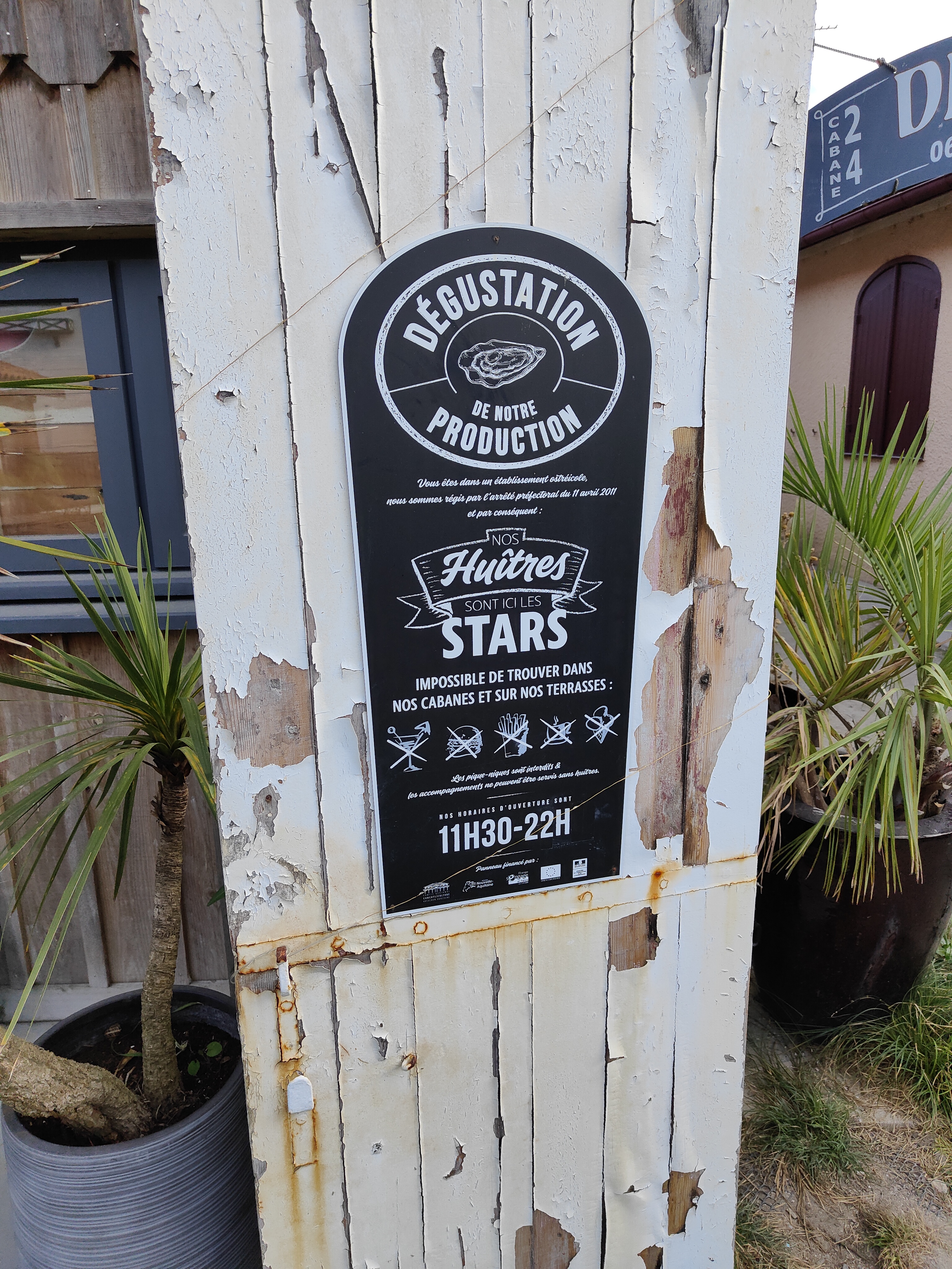 Le hasard fait bien les choses À travers de petites ruelles Merveilleux Super accueil magnifique (cabane 24) Terrasse agréable vue sur le bassin d Arcachon Et pour la dégustation Des huîtres délicieuses accompagnées de son pâté Et d autres assortiments de fruits de mer Suivez votre instinct 😉